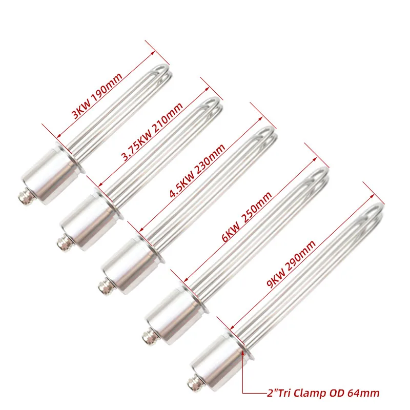 Погружной нагревательный элемент для электрического бойлера из нержавеющей стали, SUS304, 2 дюйма, Tri Clamp OD64