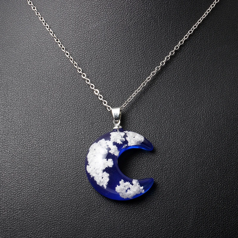 Ожерелье женское из смолы с подвеской-шариком, Луной и голубым небом, белое облако, цепочка, бижутерия, хороший подарок для девушек