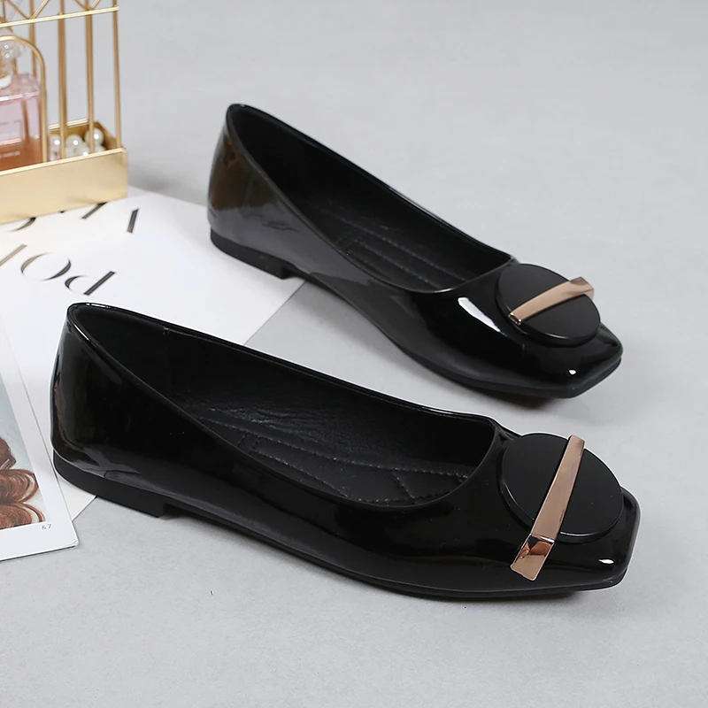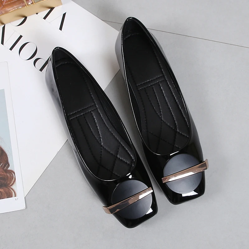 Туфли на плоской подошве с квадратным носком; Женские лоферы без за...