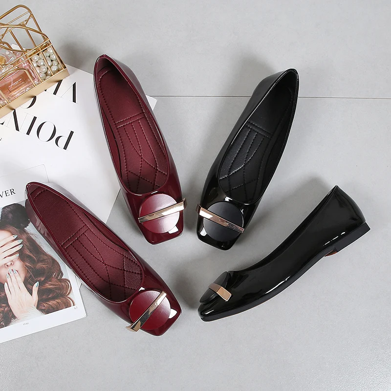 Женские Мужские узконосые свадебные туфли из лакированной кожи, квадратные носки, черные, красные туфли на плоской подошве, весенне-летние туфли без застежки для вечеринки размера плюс
