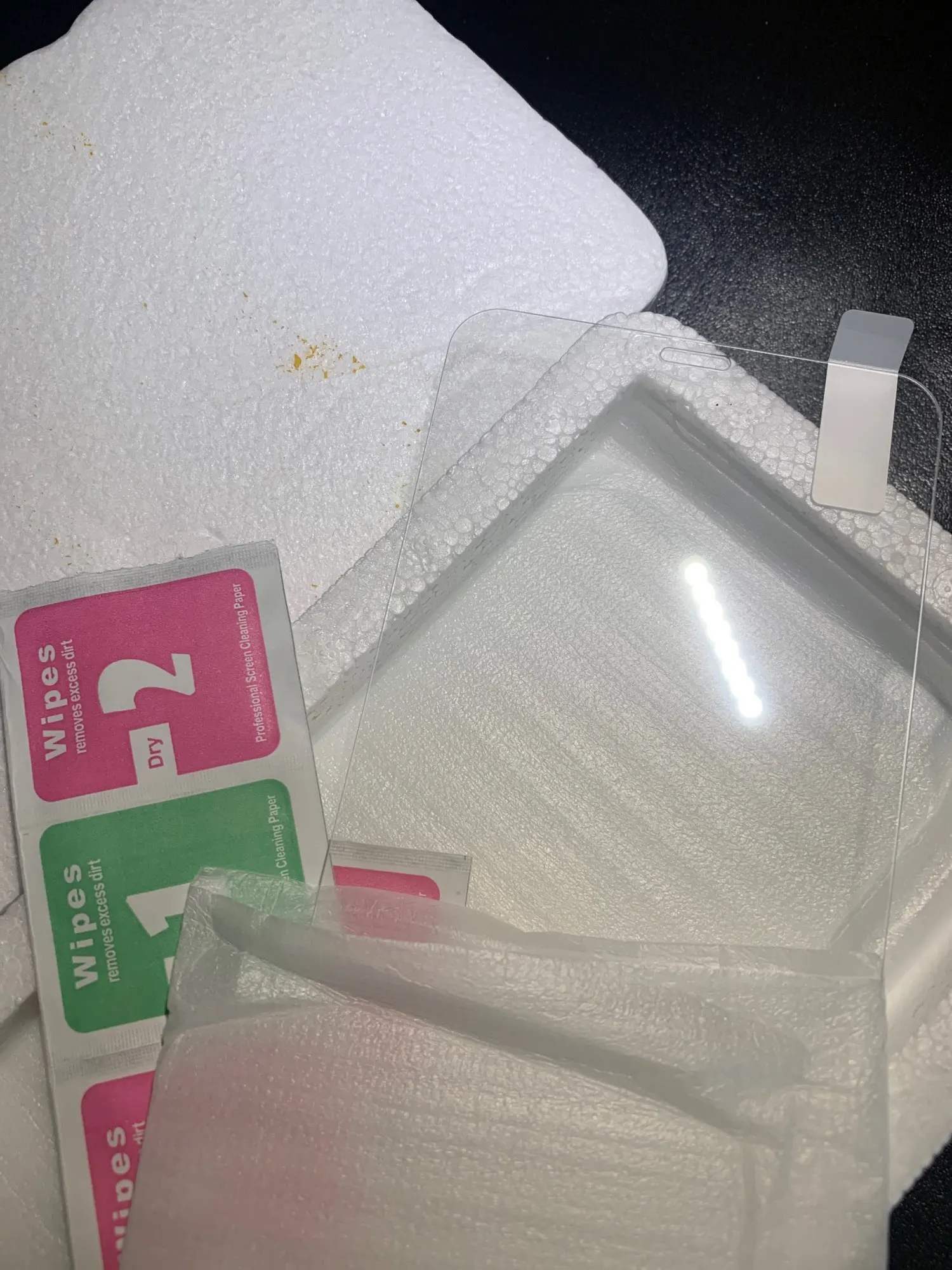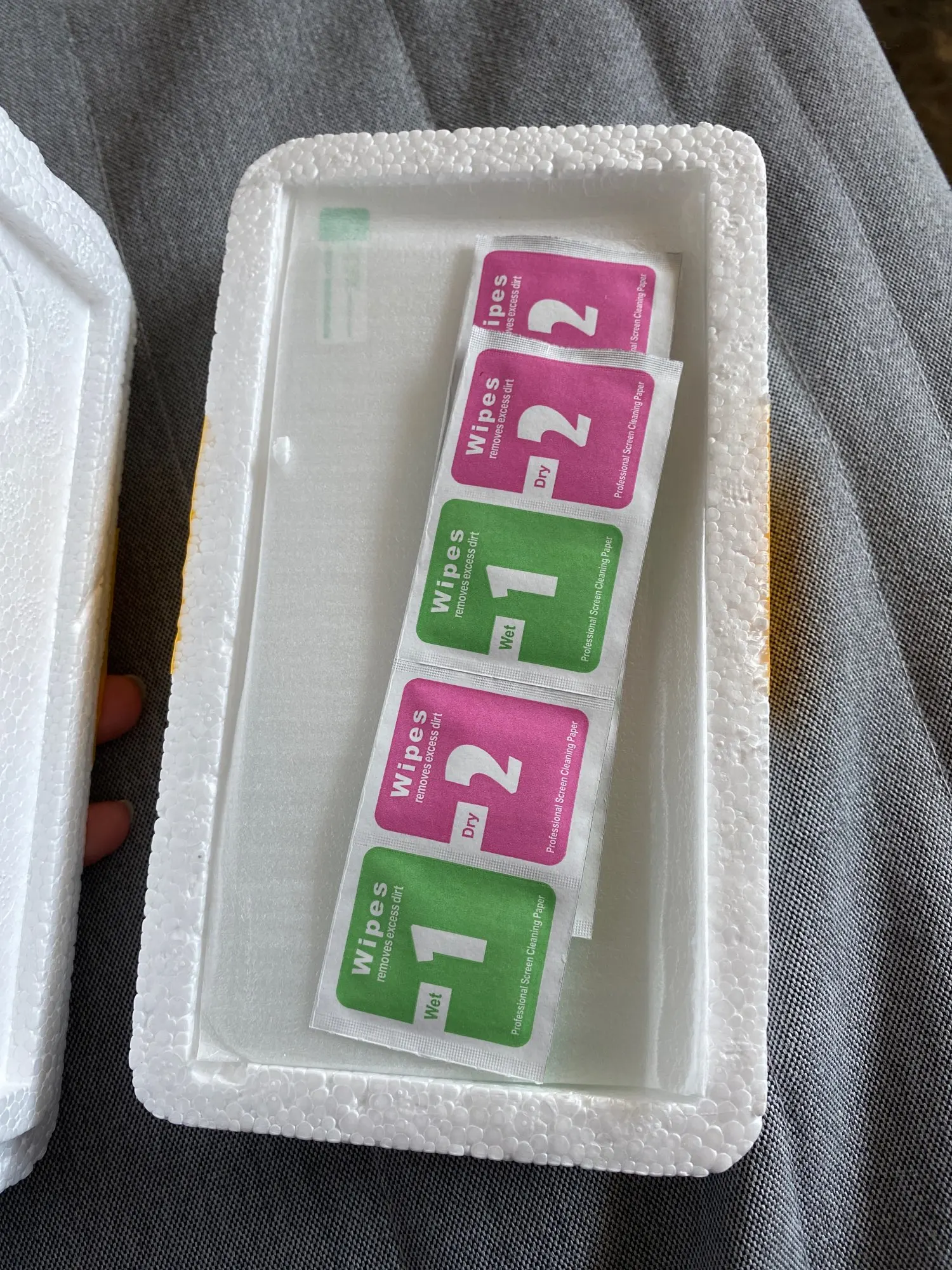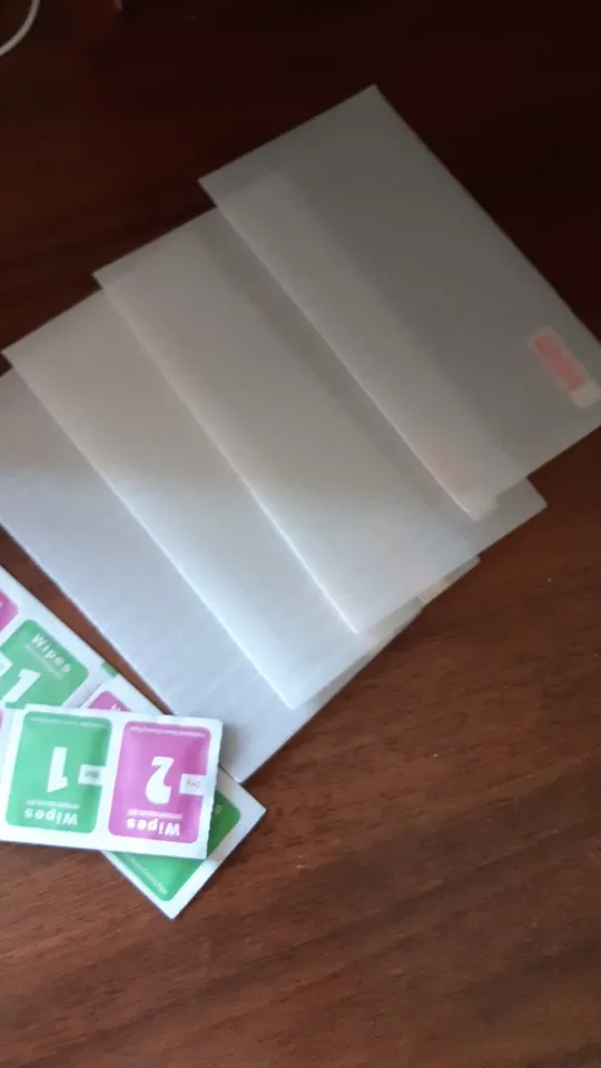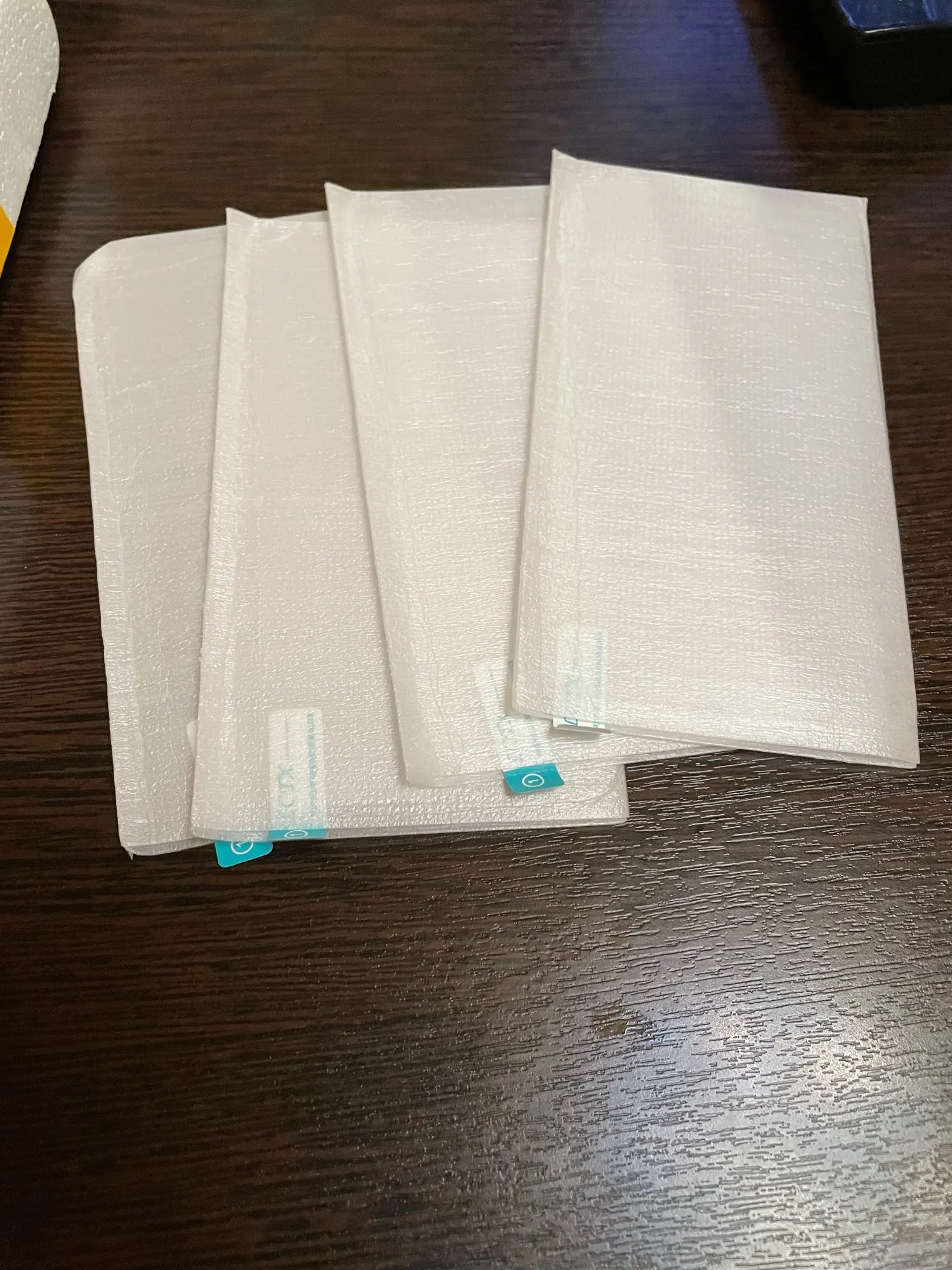 4 протектора прибыли с чистящими салфетками, хорошо упакованными и заполненными 15 дней. Очень доволен покупкой.