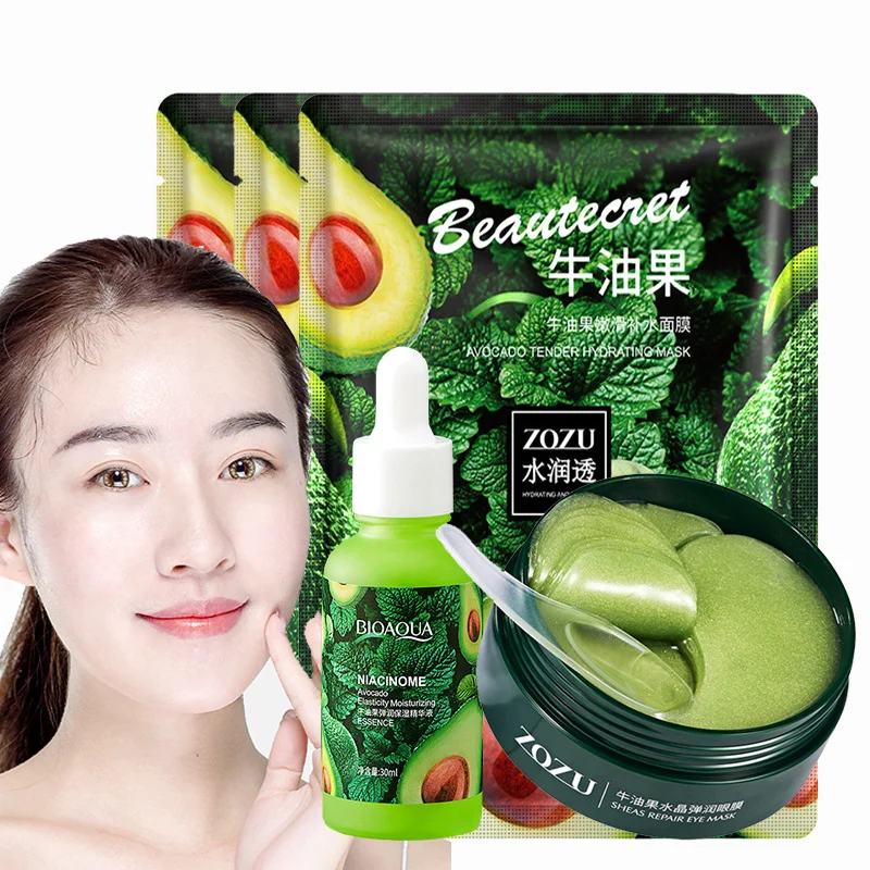 Набор для ухода за кожей с экстрактом авокадо, увлажняющая сыворотка для лица, коллагеновые патчи против морщин и Антивозрастная маска для лица, макияж