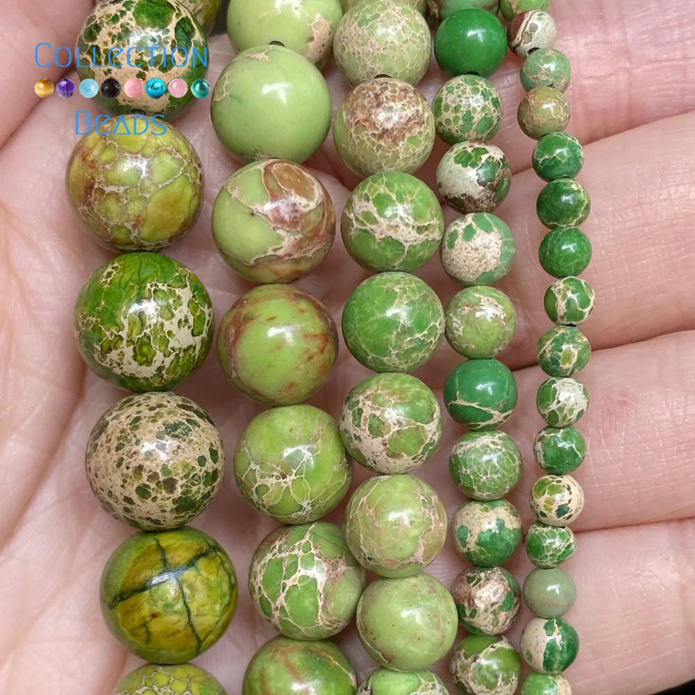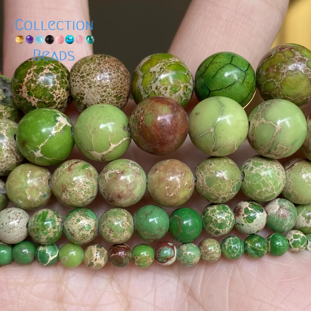 Натуральные Зеленые Бусины из яшмы в морском осадке, круглые бусины для изготовления ювелирных изделий 4-12 мм, аксессуары для браслетов «сделай сам» 15 дюймов