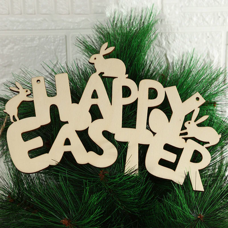 Подвесной деревянный Пасхальный кролик с пасхальвечерние дверью, пасхальное яйцо, Кролик для домашнего декора, Пасхальный венок, принадлежности деревянные изделия орнаменты