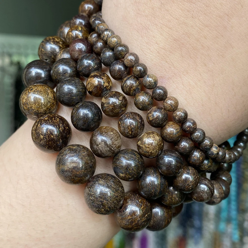 Натуральный камень бронзит бусины для изготовления ювелирных изделий Круглые свободные бусины Diy браслет ожерелье Подвески Аксессуары 4 6 8 10 12 мм