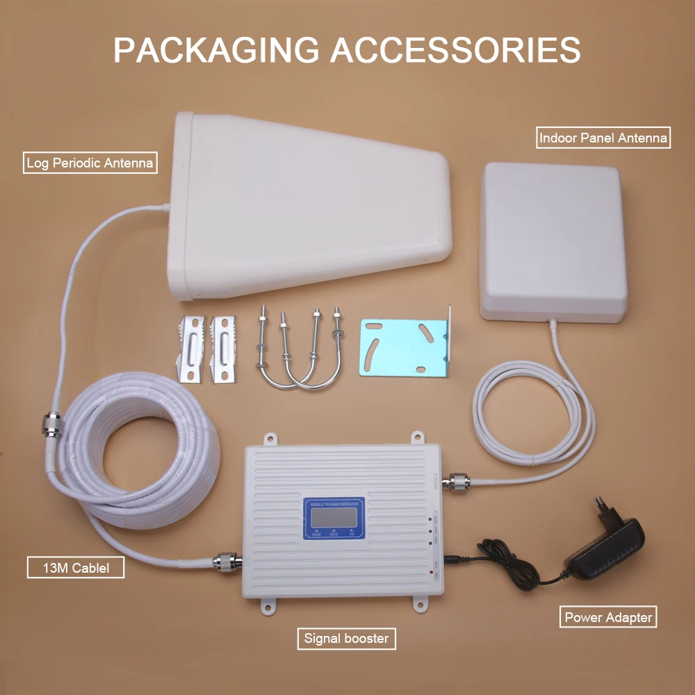 Трехдиапазонный усилитель сигнала 2G, 3G, 4G, GSM 900+DCSLTE 1800 (3 диапазона) + UMTSWCDMA 2100 (1 диапазон), ретранслятор мобильного сигнала, усилитель сотовой связи