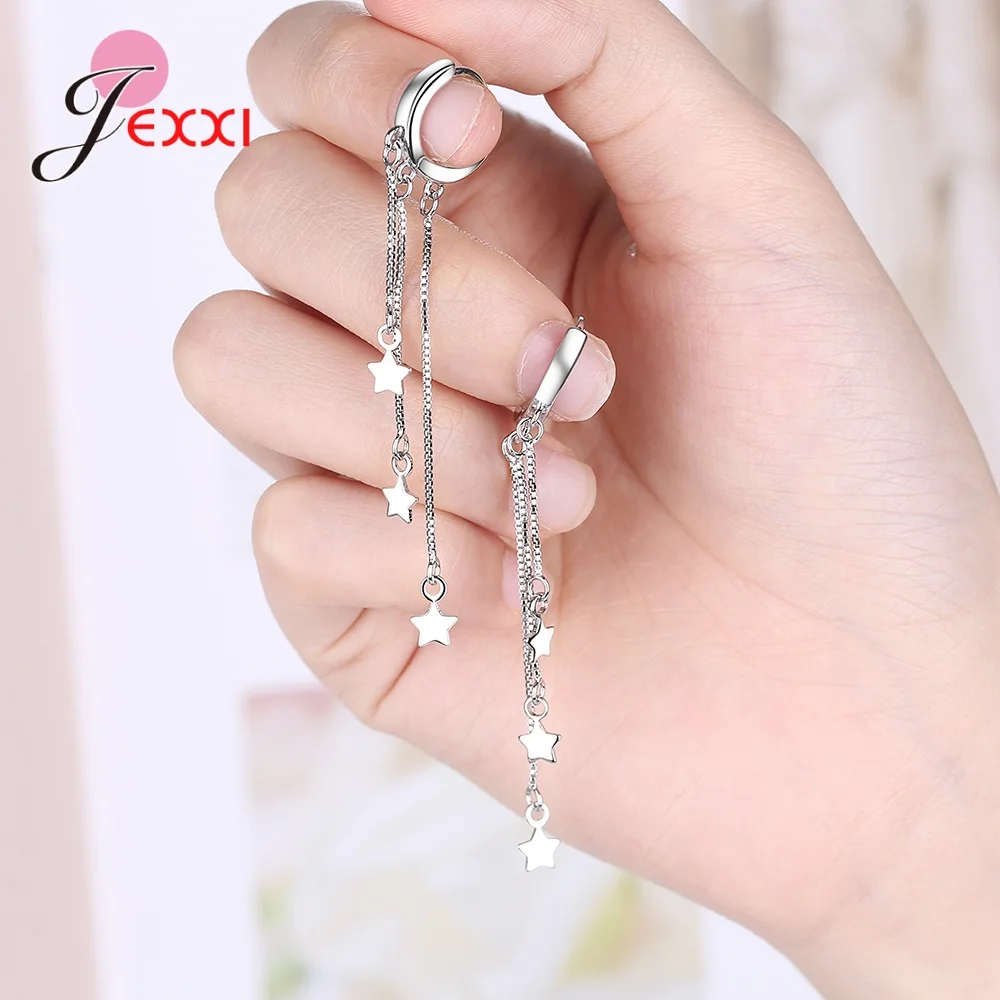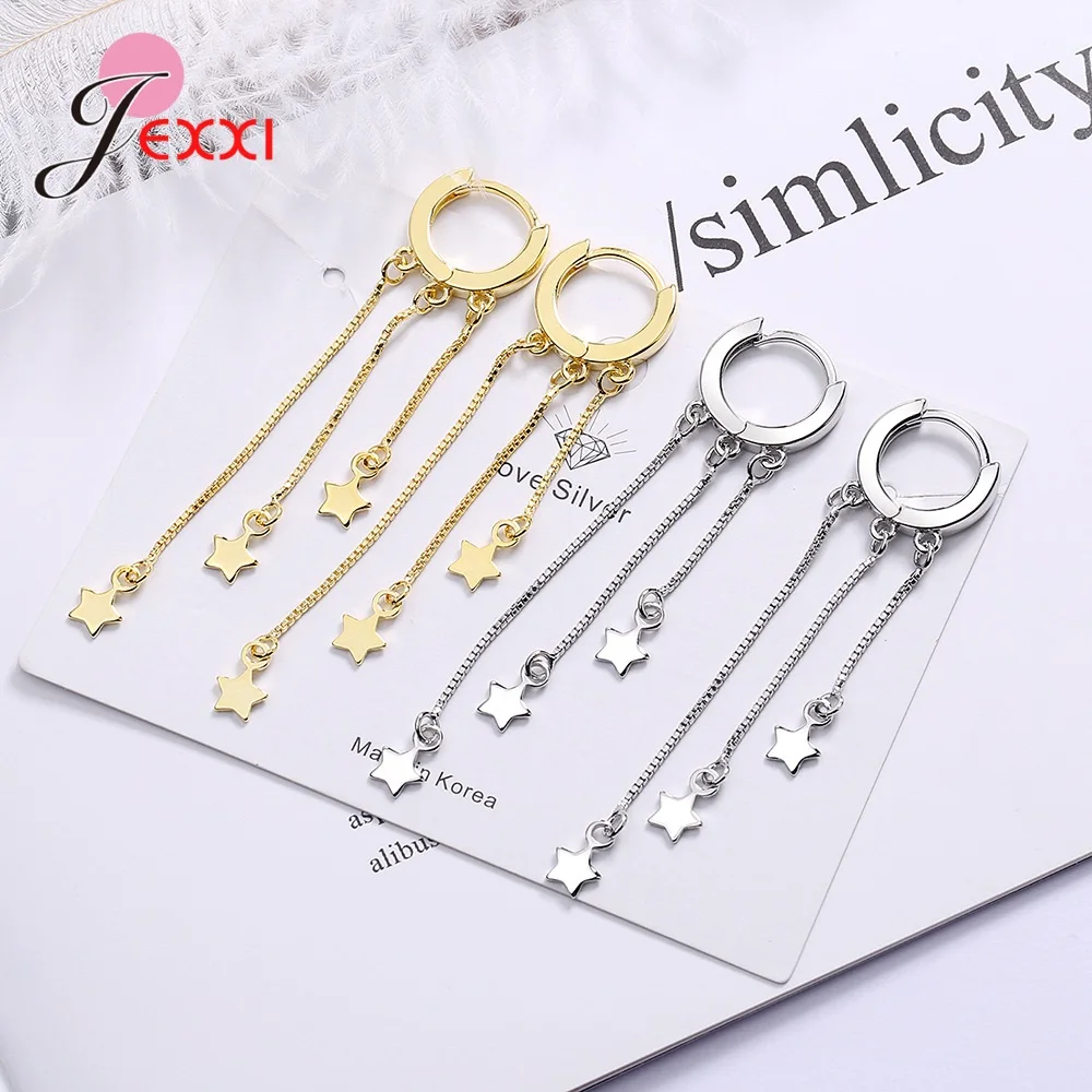 Оптовая продажа стерлингового серебра 925 новые женские модные ювелирные изделия высокого качества Простые ретро звезды преувеличенные длинные серьги с кисточками