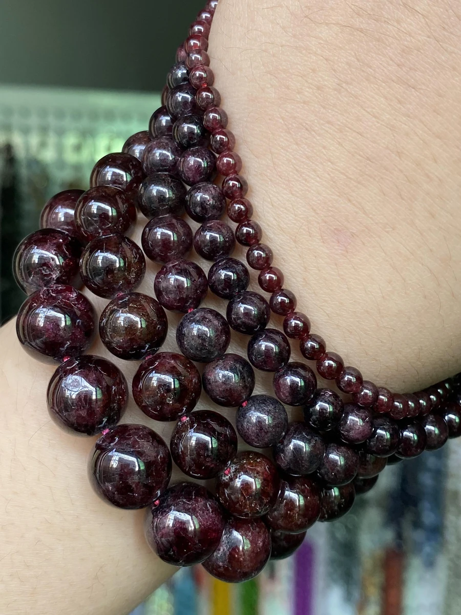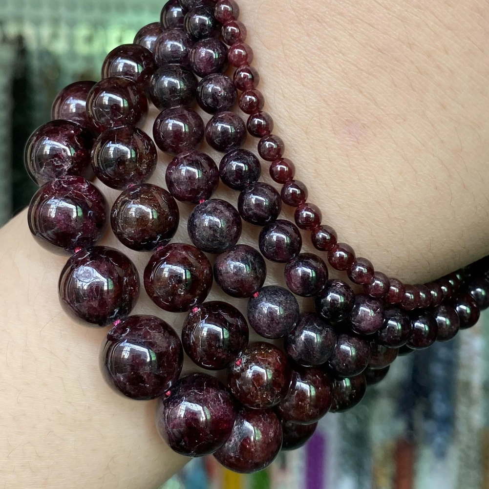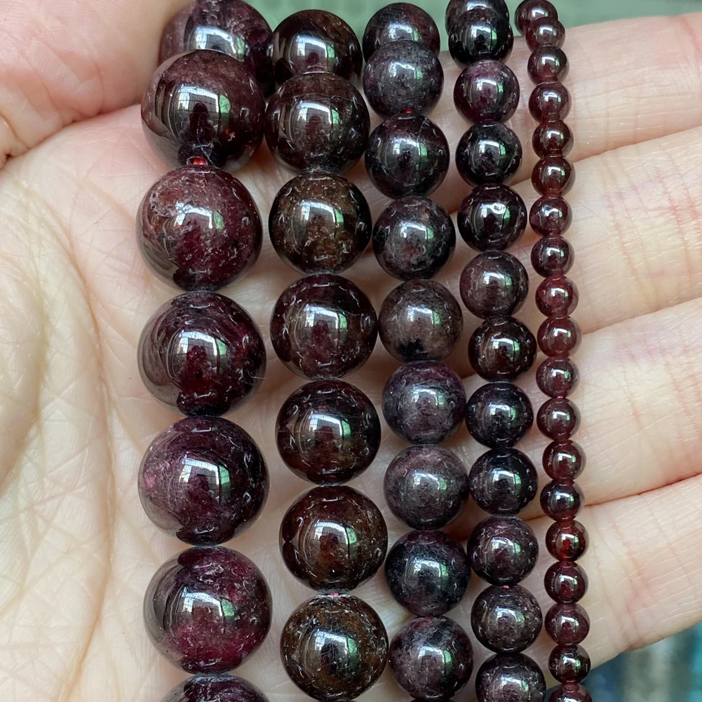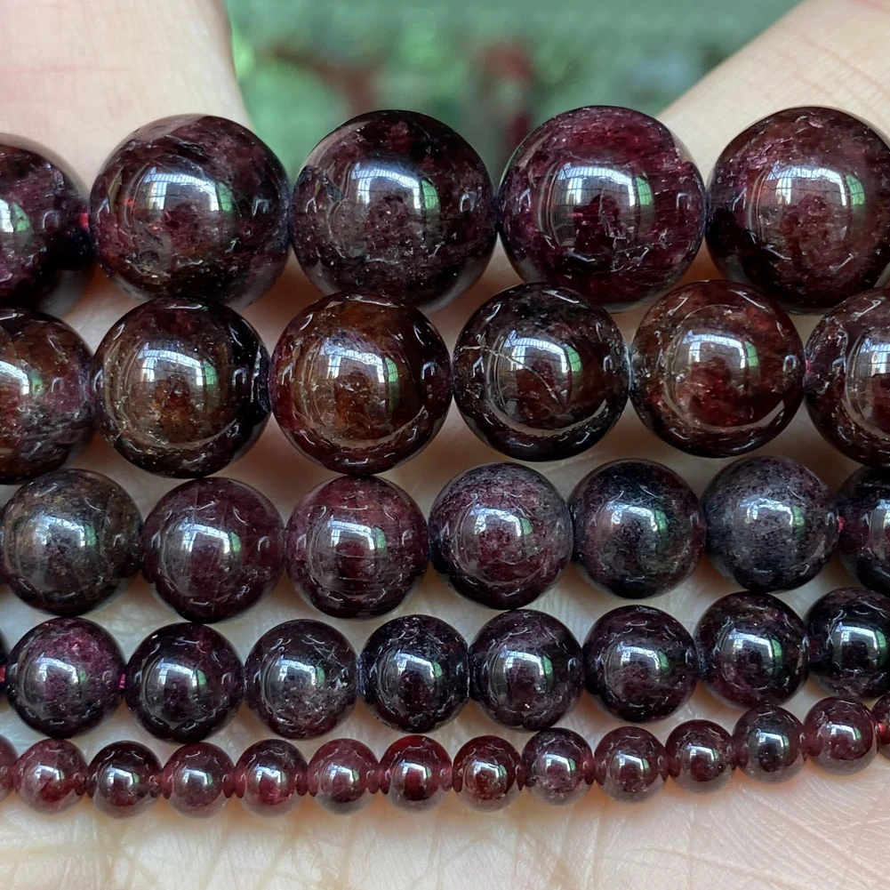 Бусины из натурального камня для украшений сделай сам, круглые бусины с отверстием под темно-красный гранат, для изготовления браслетов, цепочек, аксессуаров, 4, 6, 8, 10, 12 мм