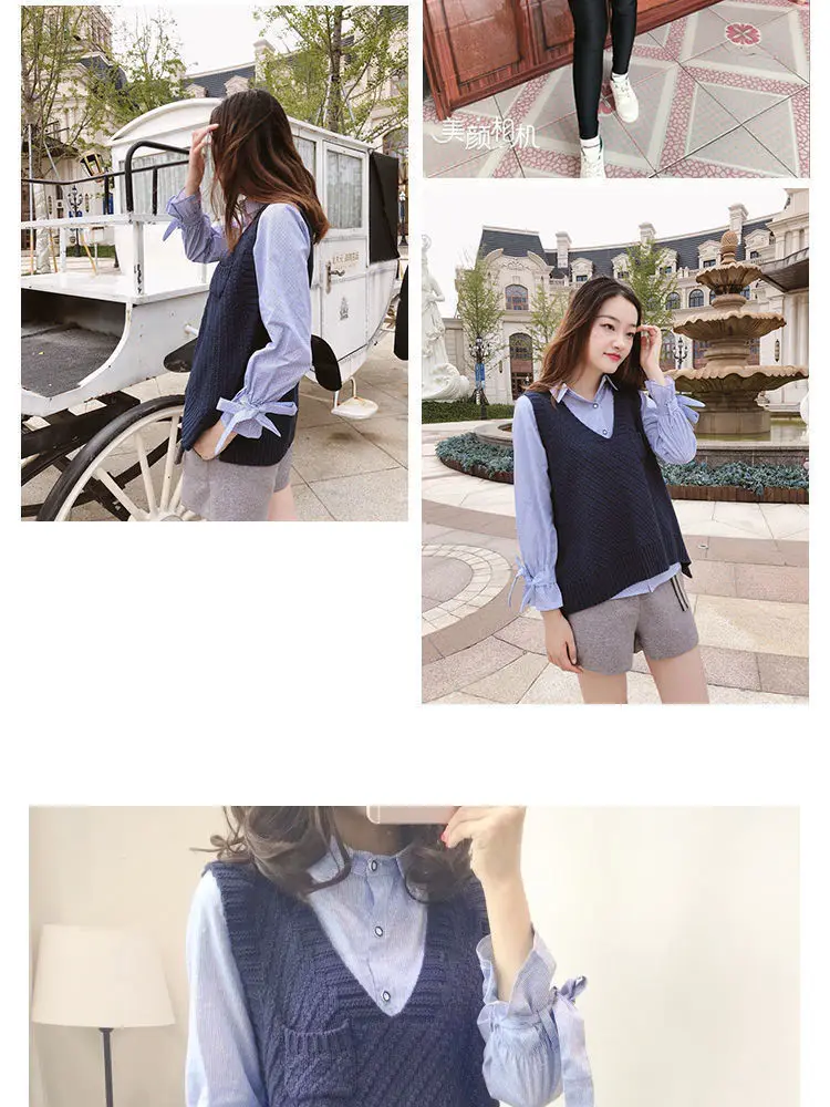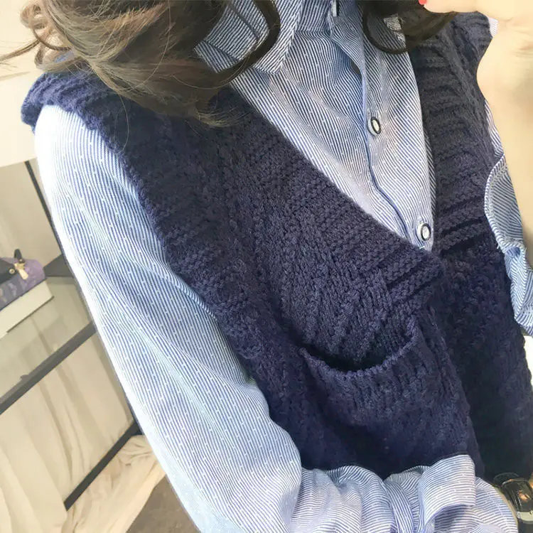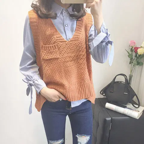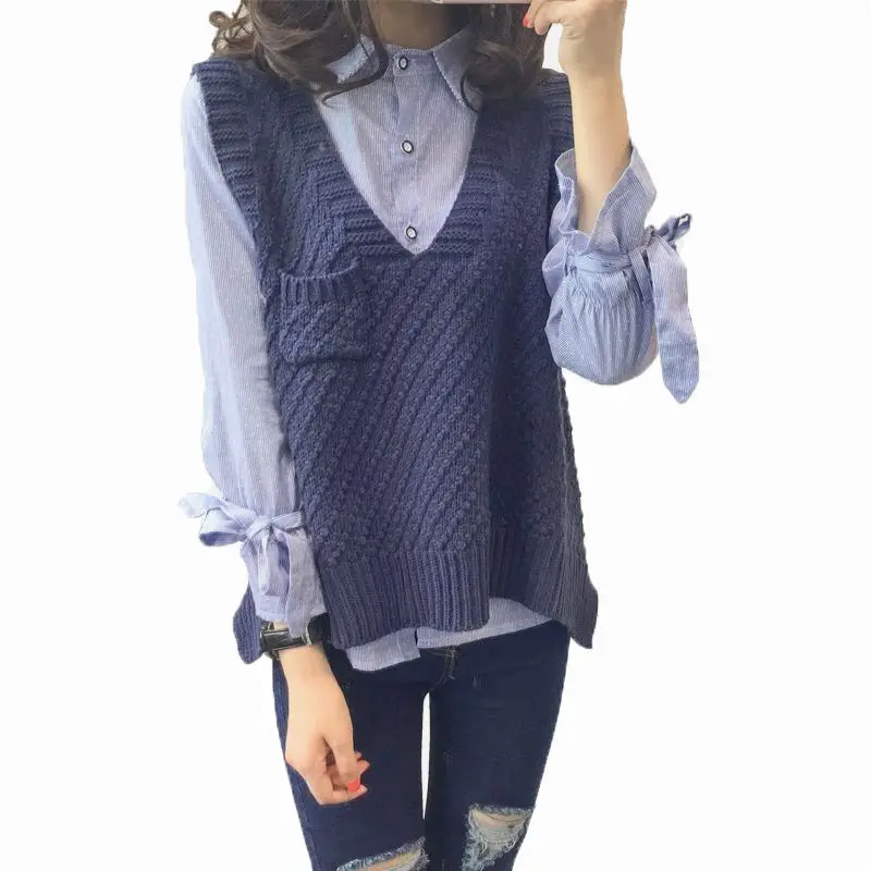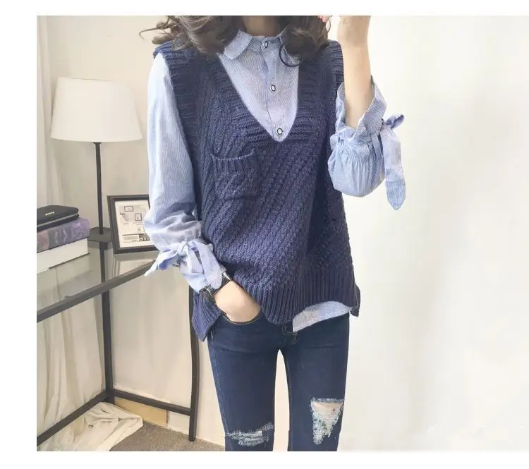 Женский вязаный комплект из двух предметов, свитер и жилет с V-образным вырезом