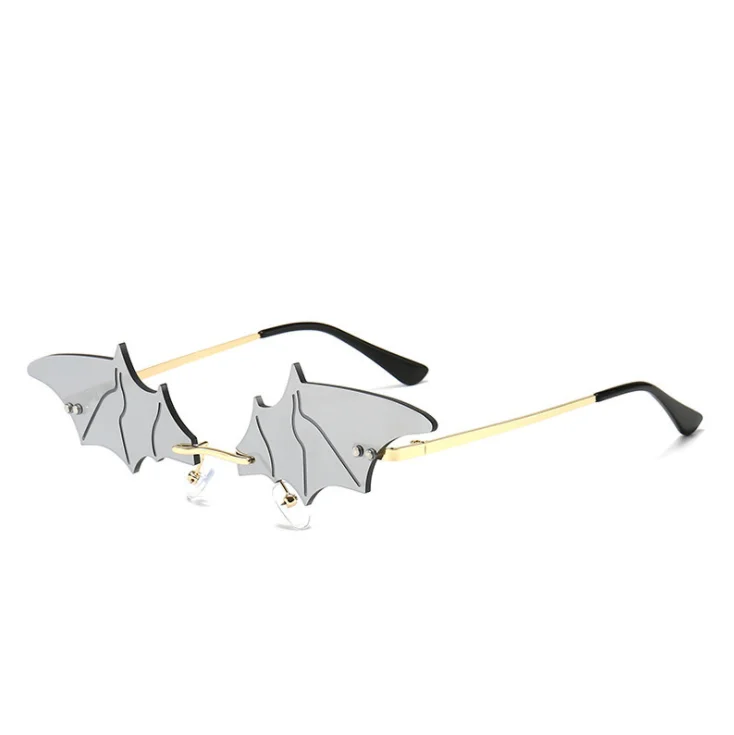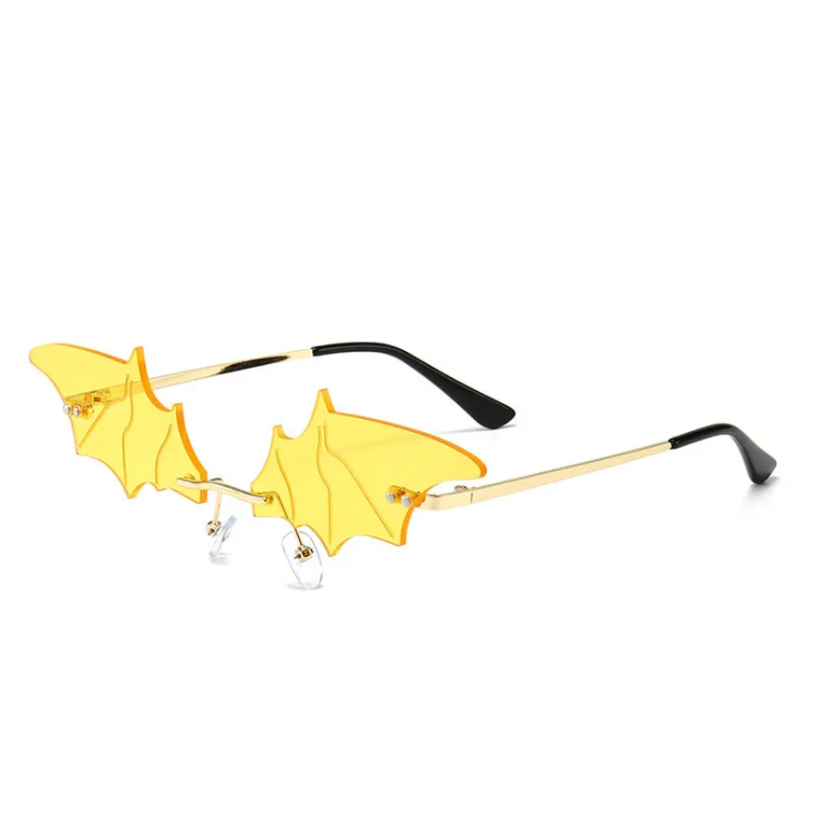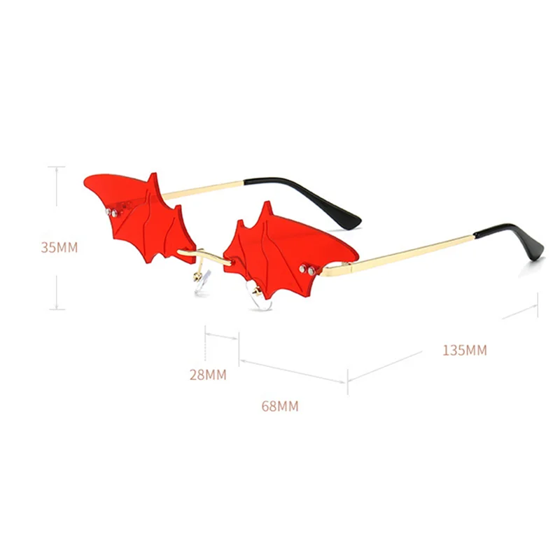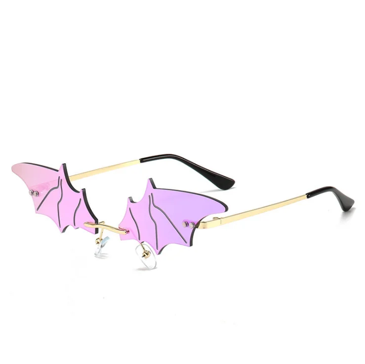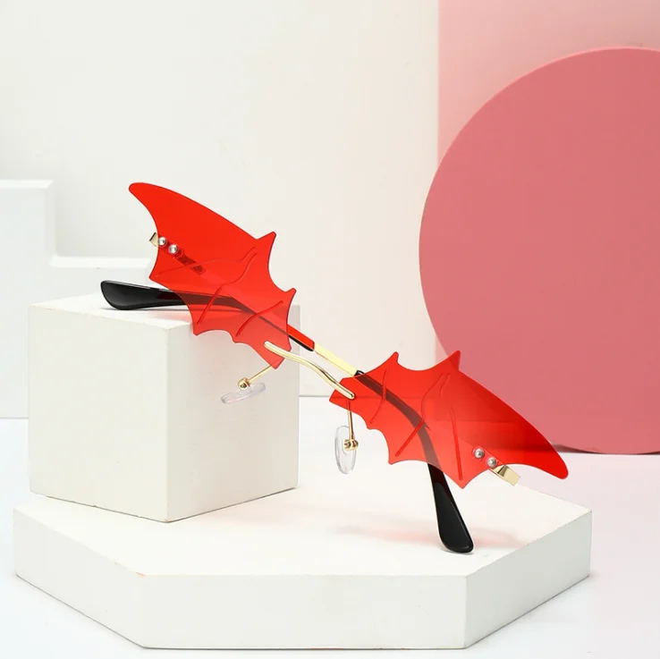 Женские солнцезащитные очки в форме летучей мыши без оправы, с защитой от слез и перьями