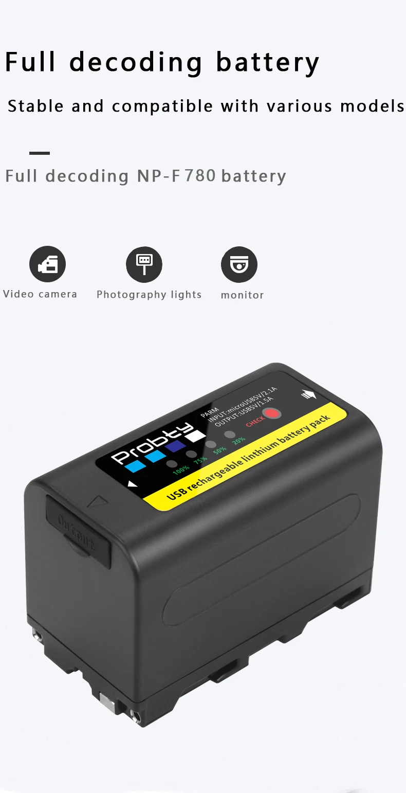 Probty 6800/8800mAh NP-F980 NP-F970 NPF960 NPF970 батарея с выходом USB для зарядки