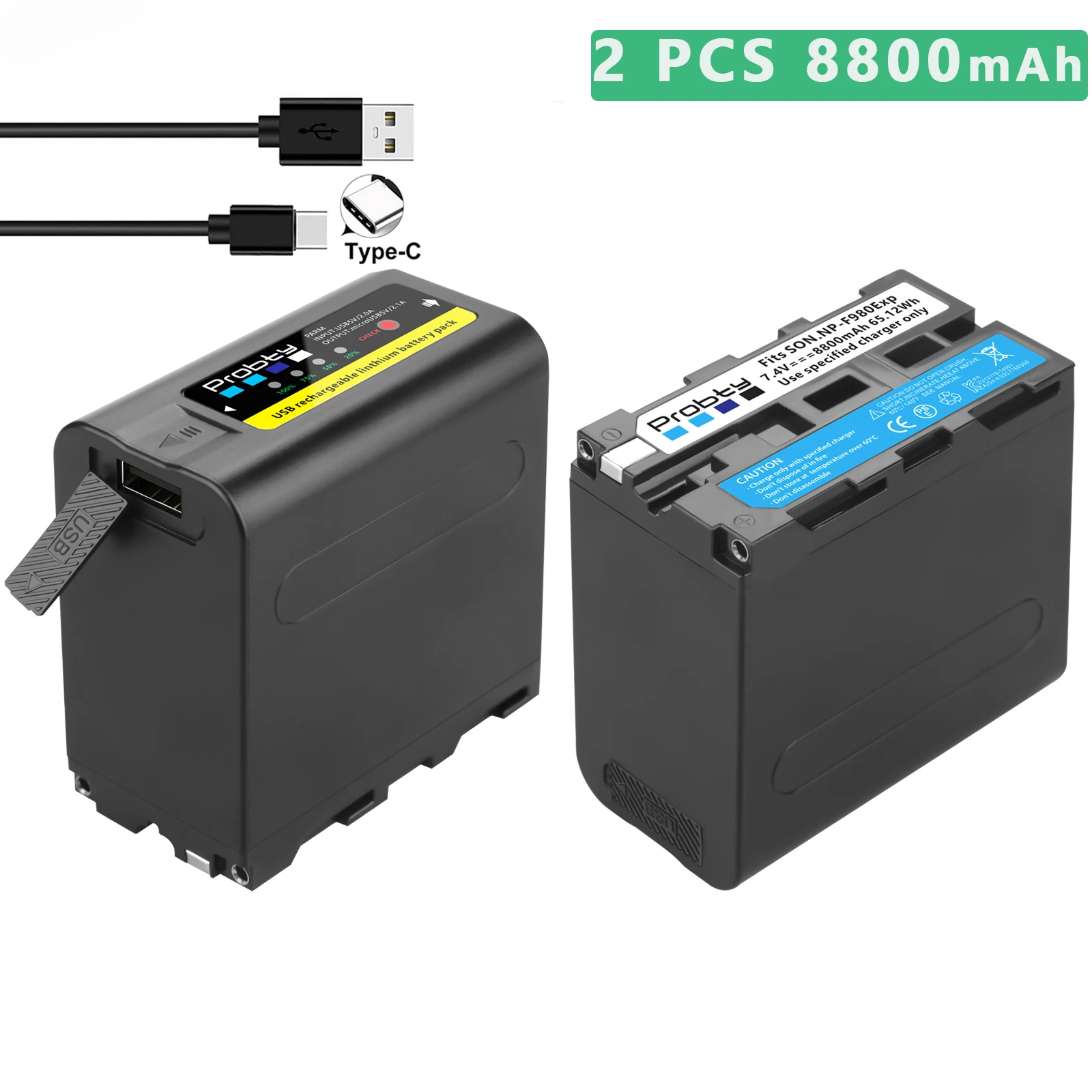 Probty 6800 мА-ч8800 мАч, NP-F980 NP-F970 NPF960 NPF970 Батарея с зарядным устройством USB Выход для Sony PLM-100 CCD-TRV35 MVC-FD91 MC1500C