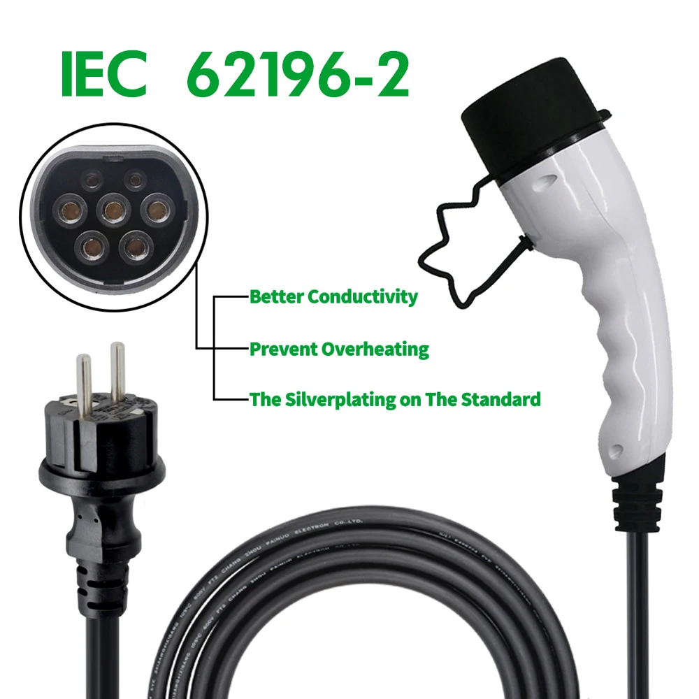 Однофазный кабель для зарядки электромобилей, 16 А, тип 2, разъем I...