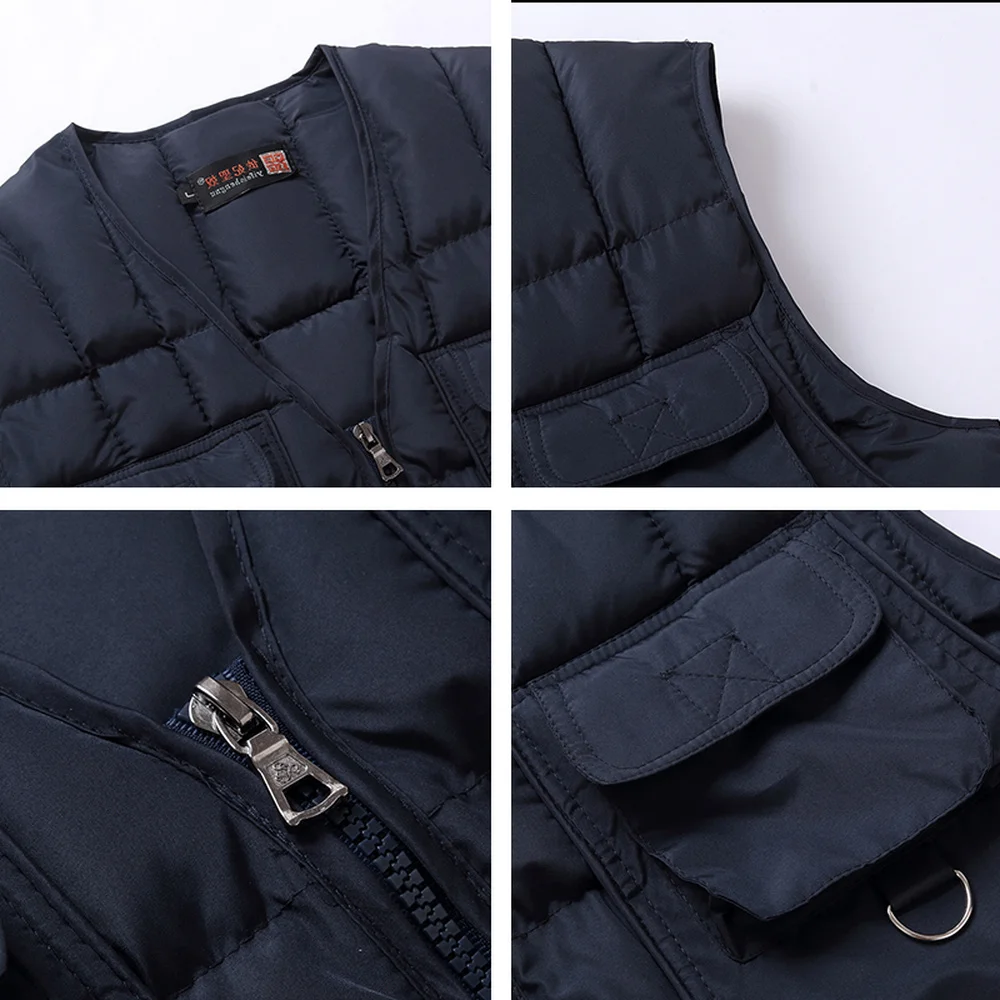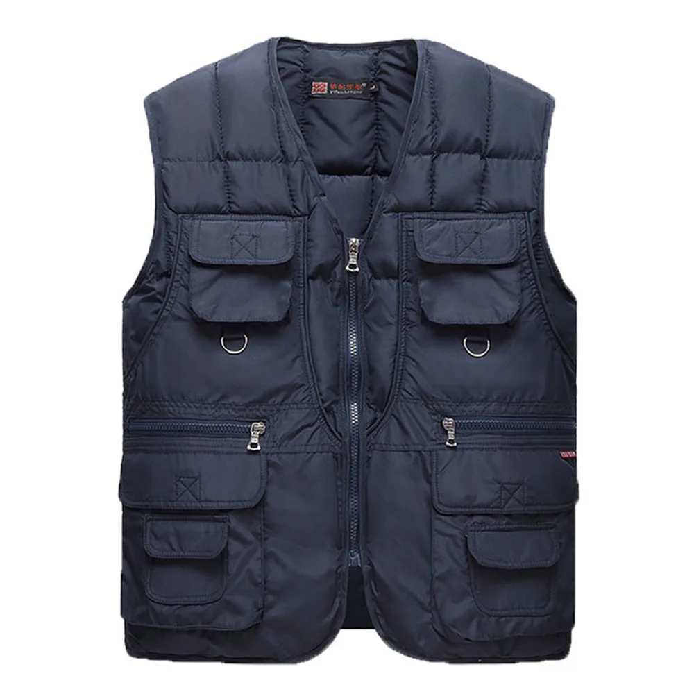 Жилет мужской на молнии, теплая хлопковая безрукавка для журналистов, много карманов, зима