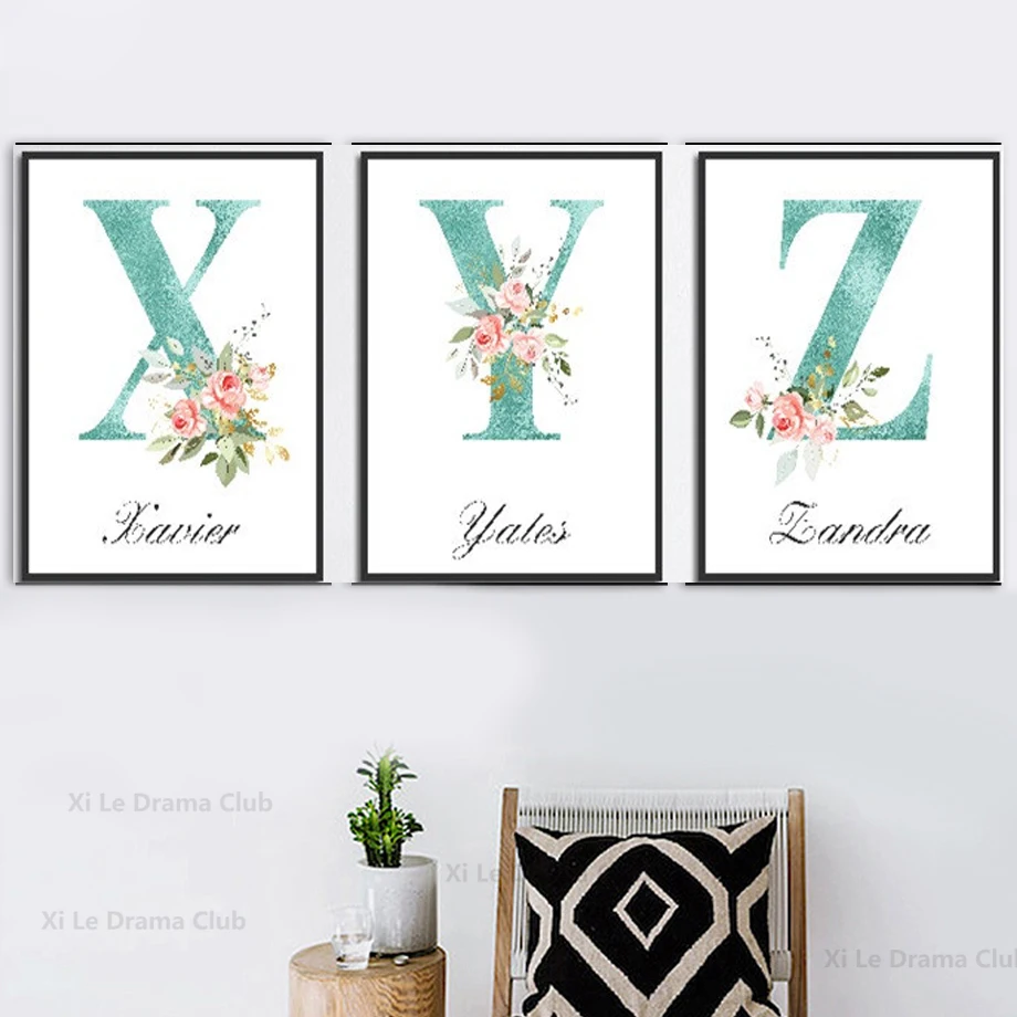 Скандинавская картина, украшение комнаты, цветочные буквы, персонал...