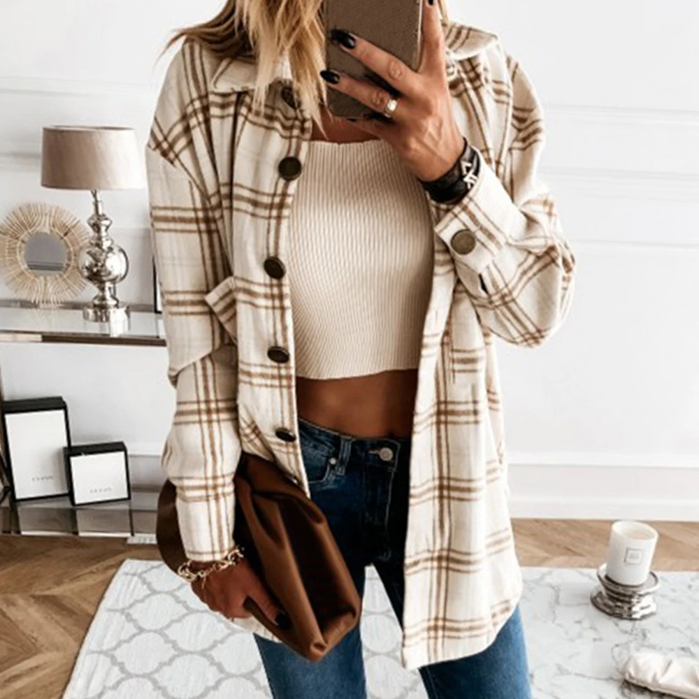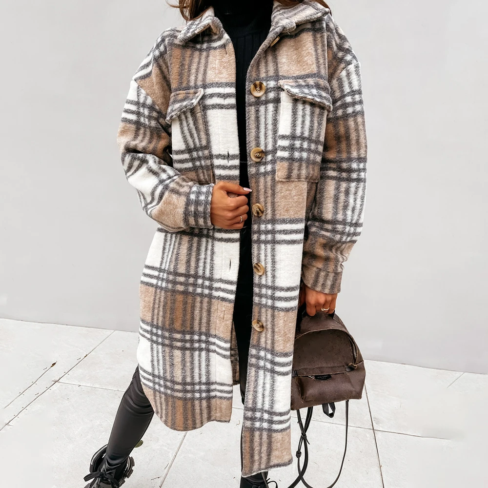 Номер моделиWomen Coat Plaid Print Jacket Women Autumn Long Coat