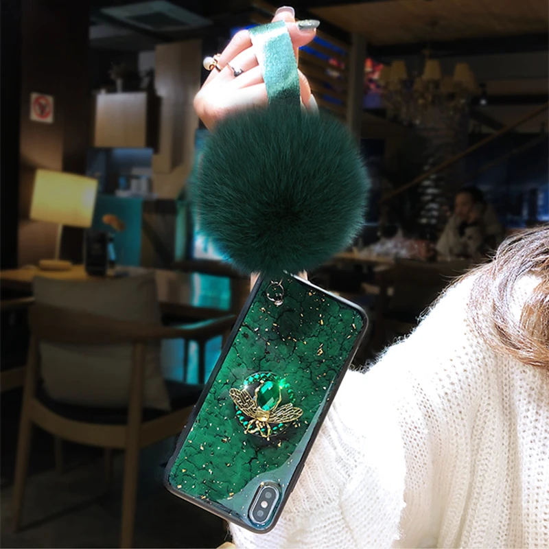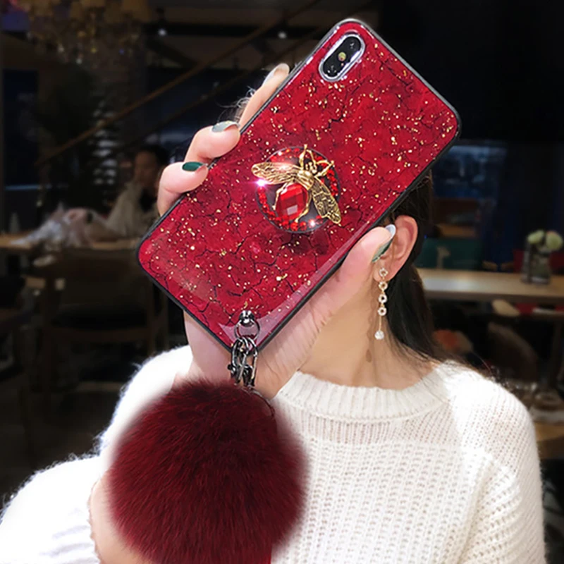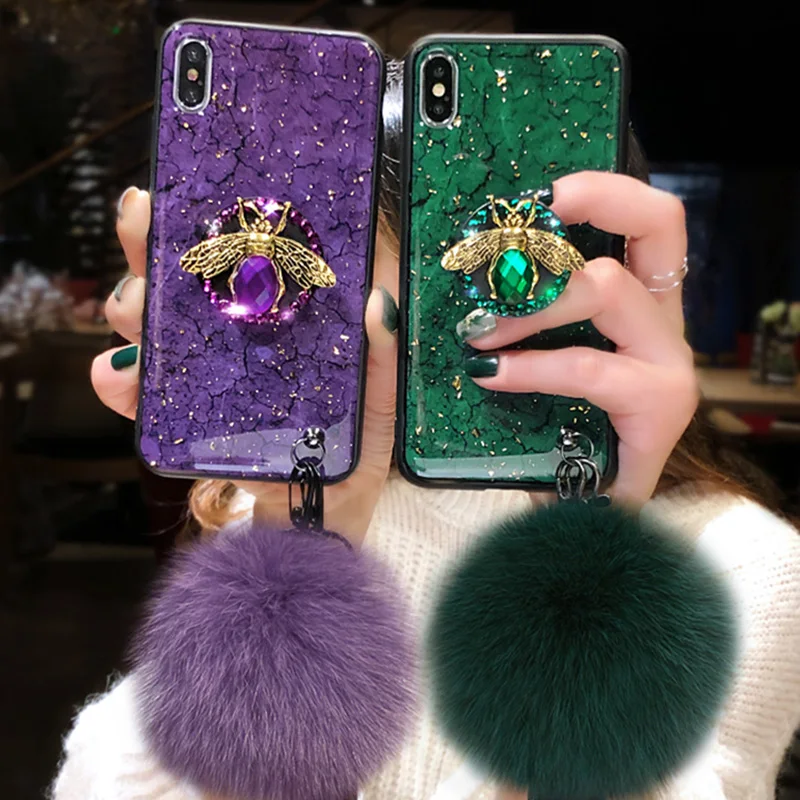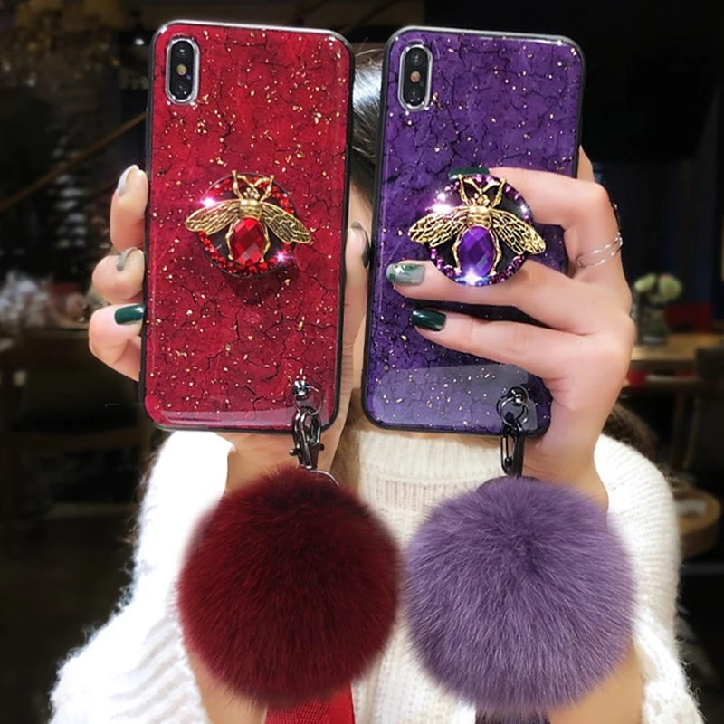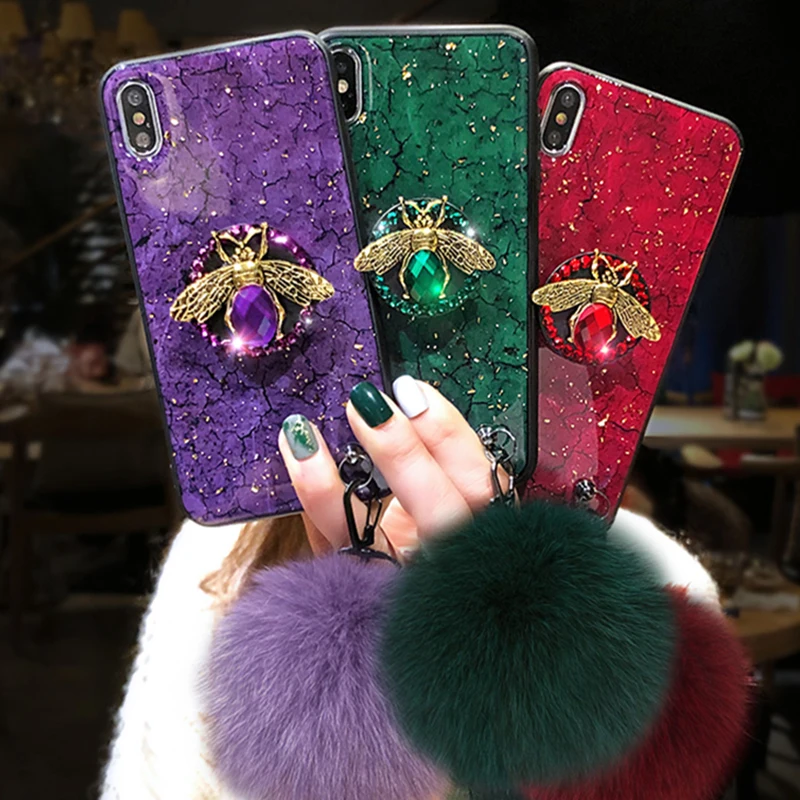 Чехол для iPhone 11, 12 Pro Max, X, XR, XS, SE 2020, 6, 6S, 7, 8 Plus, силиконовый чехол с мраморной золотой фольгой и блестками, с кольцом-держателем в виде алмазной пчелы