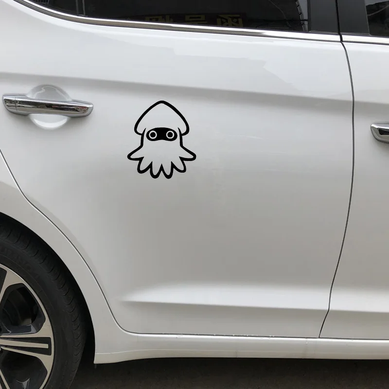 Автомобильная наклейка с милым маленьким кальмаром, мультяшная наклейка, автомобильное украшение, аксессуары, наклейка, водонепроницаемая чернаябелая наклейка с царапинами, 15 см * 13 см