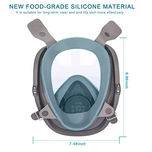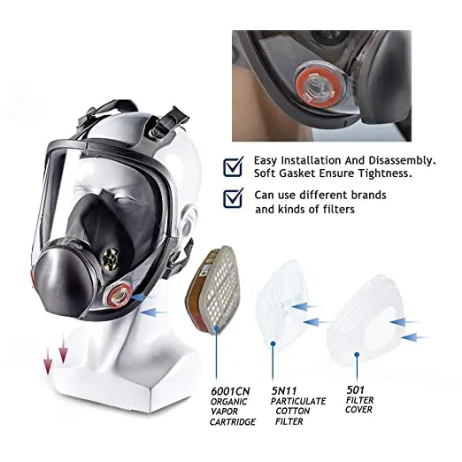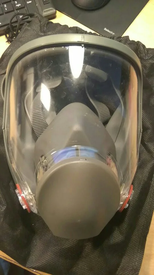 Маска хорошо сделана и достаточно водонепроницаема. Я думаю, что в то же время я должен был заказать Запасные картриджи. Даже для значительной пыли при литье это будет эффективно. Маска поставляется с липкой защитой для защиты лица перед пылью или проекцией краски. Также заказать одновременно.