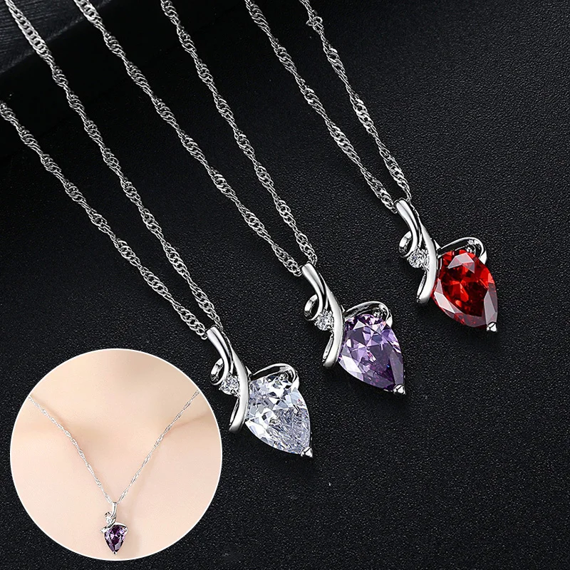 Женское Ожерелье в форме капли, яркое фиолетовое ожерелье в Корейском стиле, стильные стразы, изысканный подарок на день Святого Валентина