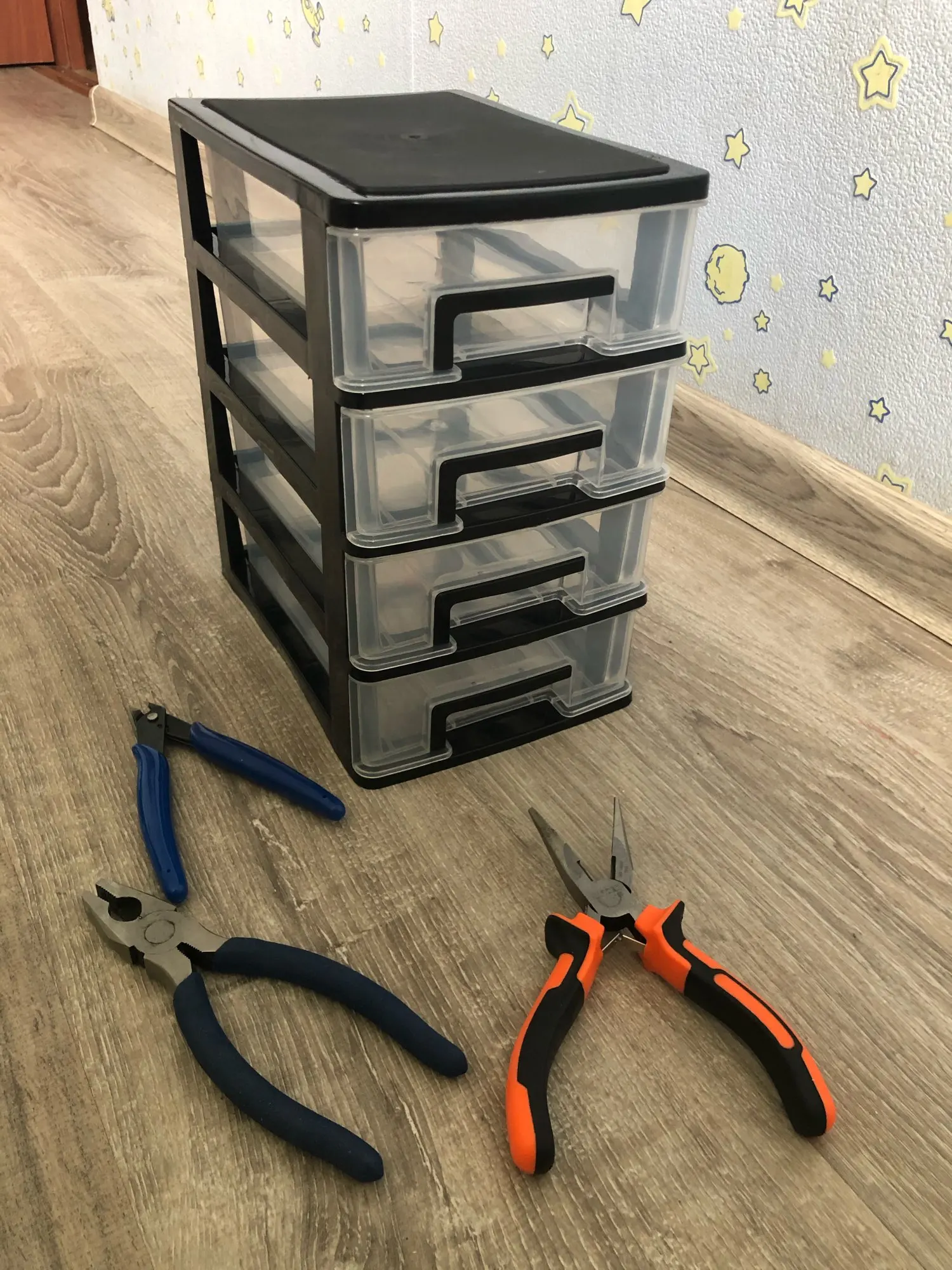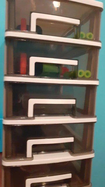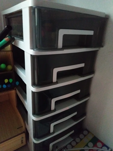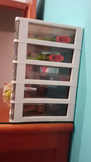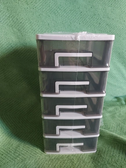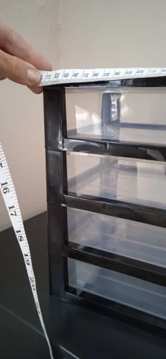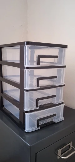 Самый маленький размер, он идеально подходит для стола. Они подходят достаточно вещей, и это приятно быть пластиком, как на картинке. Сильный и твердый. Все ящики открываются идеально. Поздравляю продавца, я снова куплю. Я рекомендую это. Он прибыл раньше, чем указано в Испании.