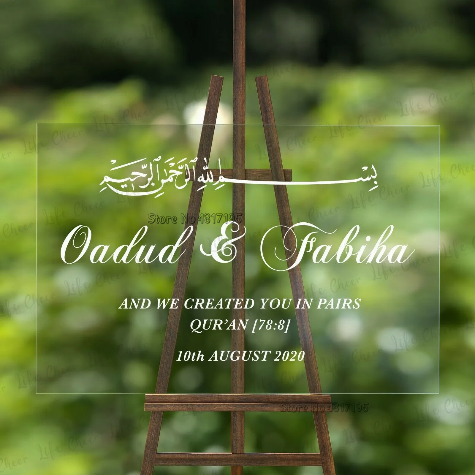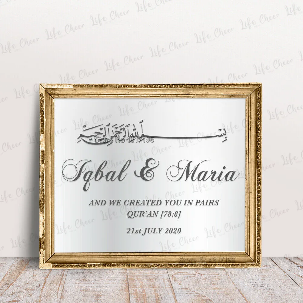 Индивидуальный Свадебный знак наклейка Бисмиллах арабский Коран Декор Свадьба приветственное зеркало наклейка Аллах создал вас в паре художественные фрески