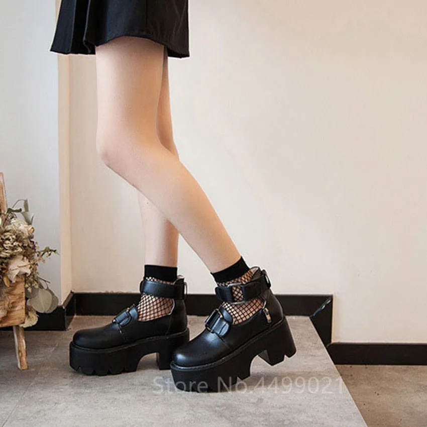 Туфли Mary Jane В Стиле Лолита, готика, с круглым носком, в японском стиле, колледж, униформа JK, в стиле Харадзюку, искусственная кожа, на платформе, черные туфли