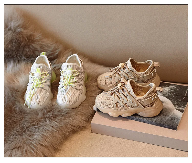 Весенние детские спортивные кроссовки для маленьких мальчиков; Брендовые кроссовки для бега; Детские повседневные кроссовки без застежки; Бежевые кроссовки для девочек