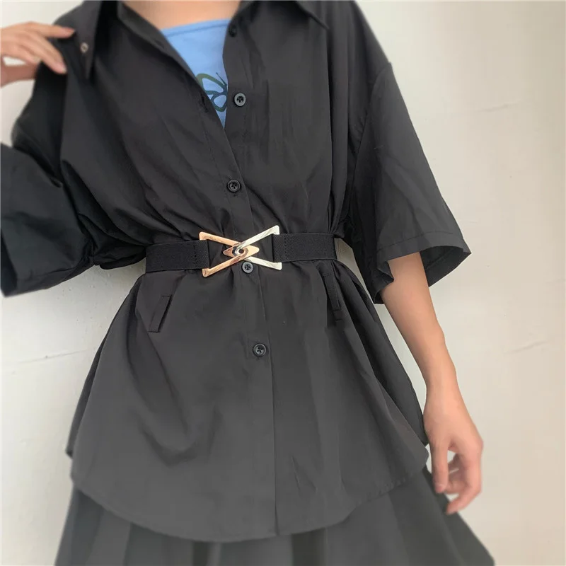 Женский ремень с пряжкой, широкий эластичный ремень с геометрической пряжкой, длина 65 см, широкий пояс-ремень, аксессуары для женщин