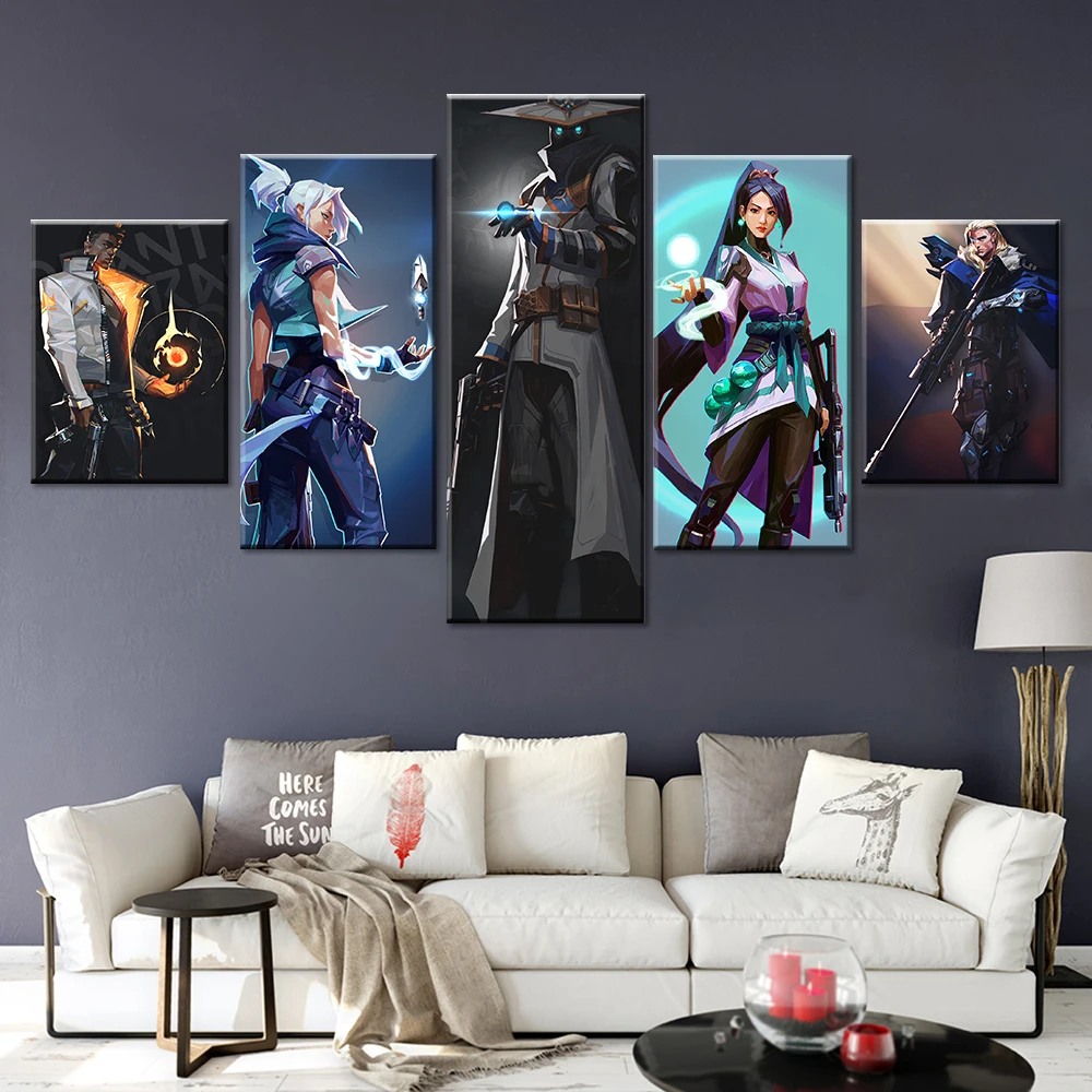 5 шт. валорант картина маслом Джетт шалфей Cypher Феникс Сова Холст видео игры плакаты домашний декор диван фон Настенный Чехол Ar