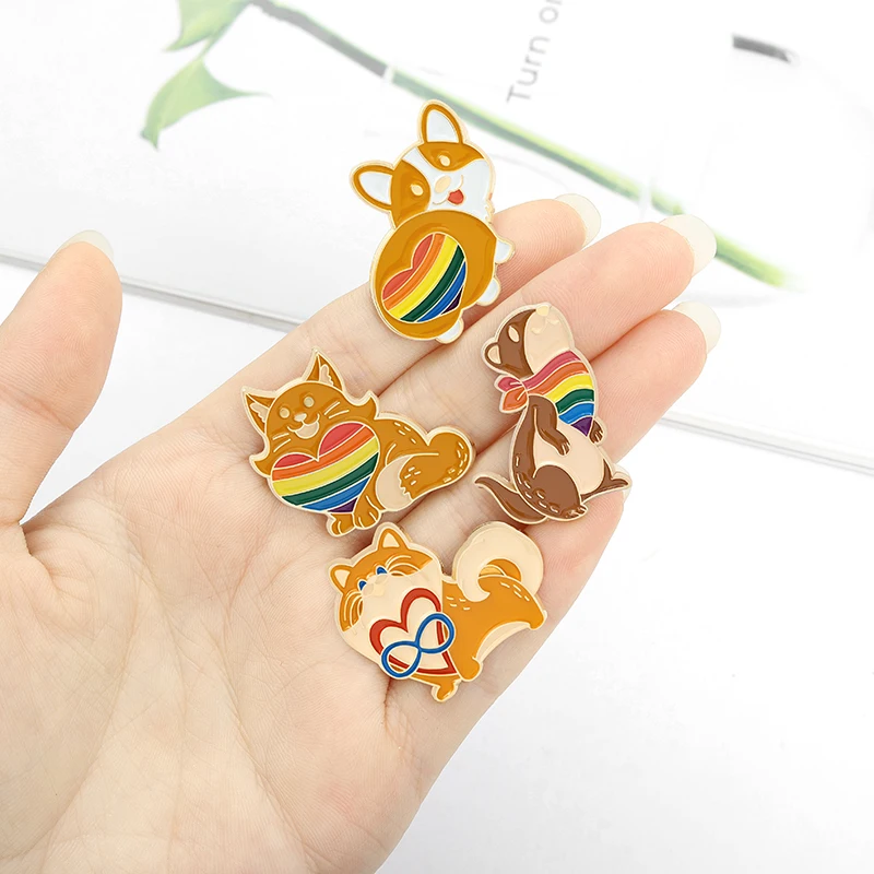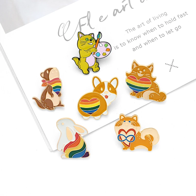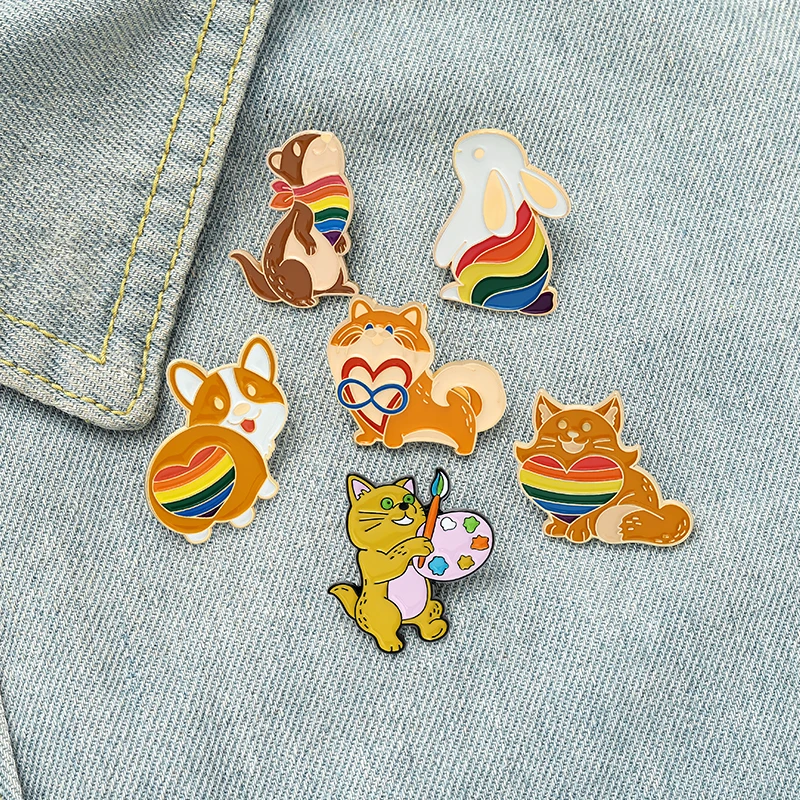 Эмалированная булавка с радужным сердцем и животными на заказ, кошка, кролик, корги, броши БелКА для сумки, значок на лацкане, ювелирное украшение, подарок для друзей