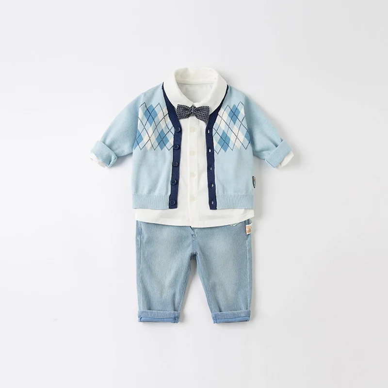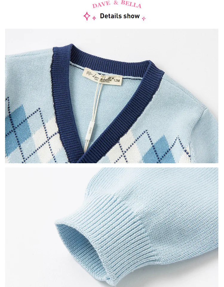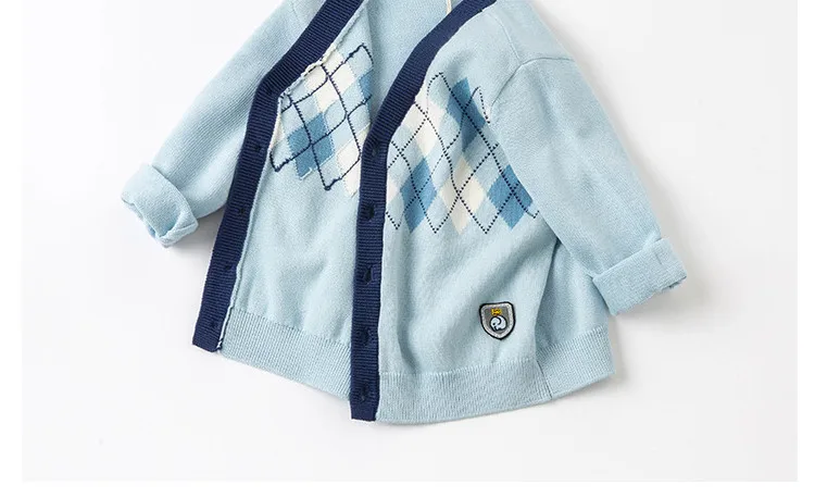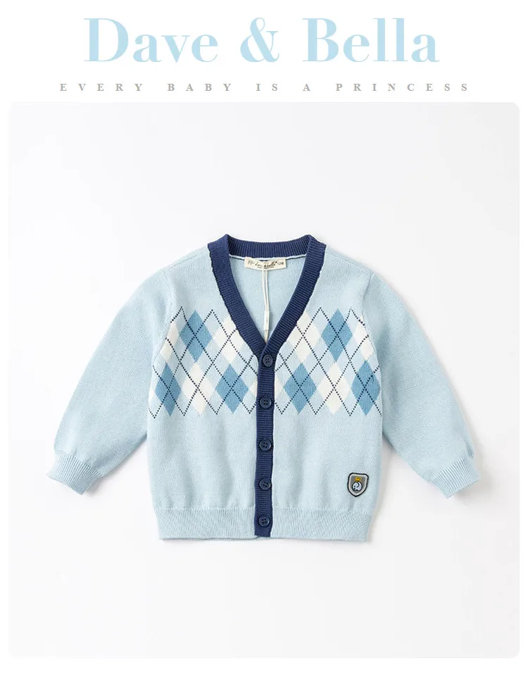 DBH15918, демисезонный клетчатый кардиган в стиле Дейва Беллы для маленьких мальчиков, Детское пальто, милый вязаный свитер
