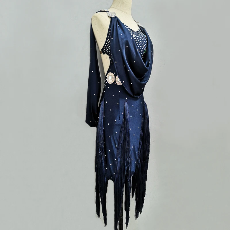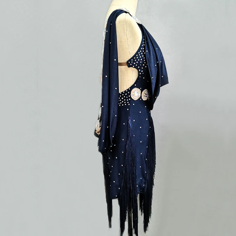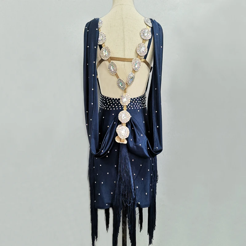 Латинские танцевальные платья для танцев женские Стразы бахромой платье с низким вырезом на спине для выпускного вечера вечерние показать латинский танец костюм платье для девочек BL5380