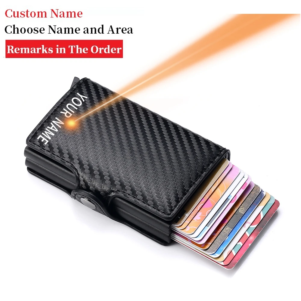 Держатель для кредитных карт на заказ, мужской двойной держатель для кредитных карт из углеродного волокна с защитой от радиочастотной идентификации, металлический кошелек для деловых банковских карт, мини-кошелек