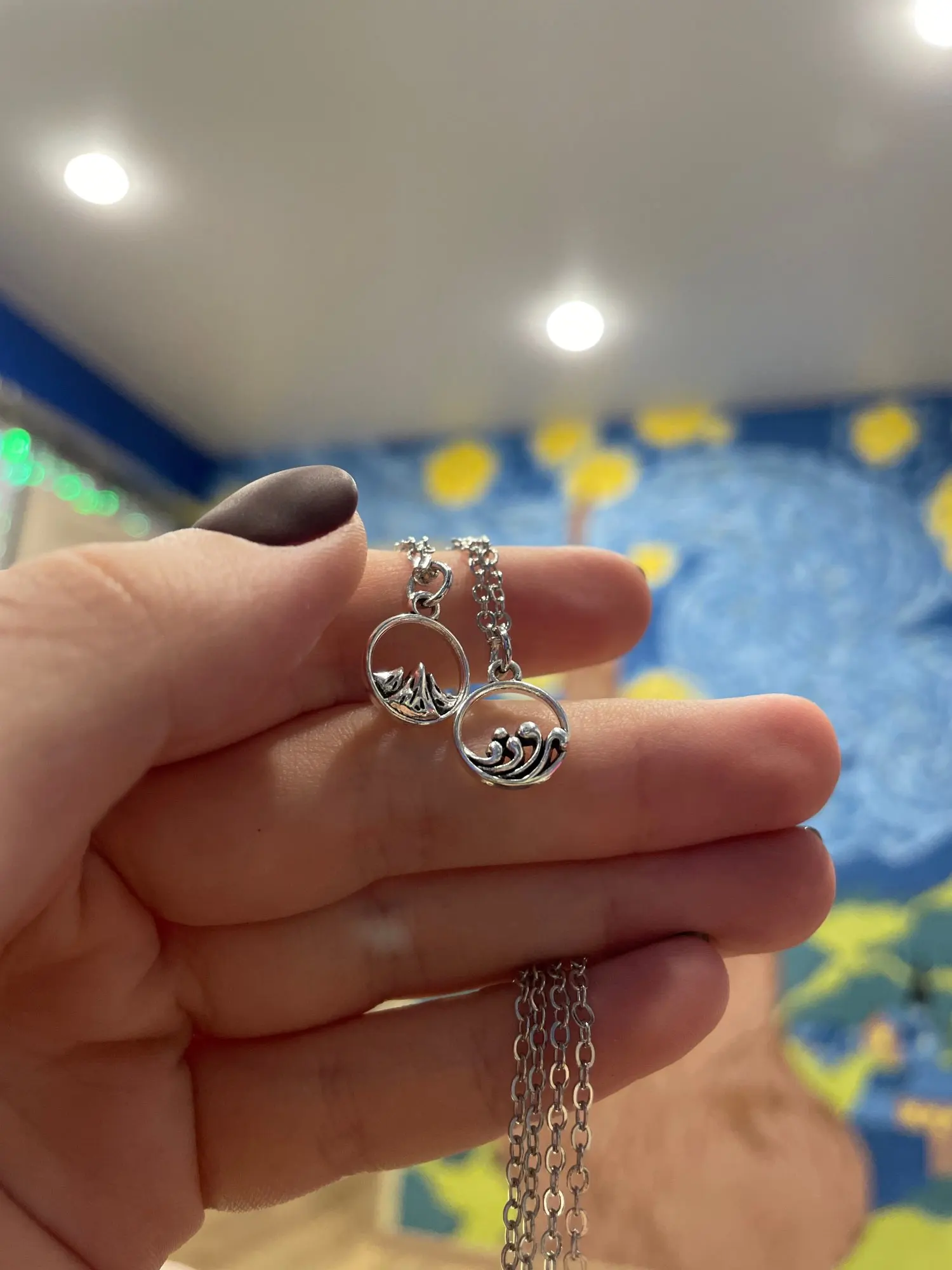 Ожерелье унисекс из нержавеющей стали, винтажное ожерелье с подвеской в виде горы океана, 2 шт.