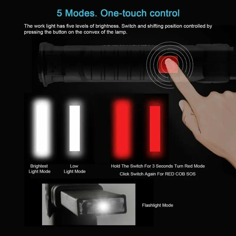Светильник рь рабочий магнитный, 5 режимов, USB, водонепроницаемый