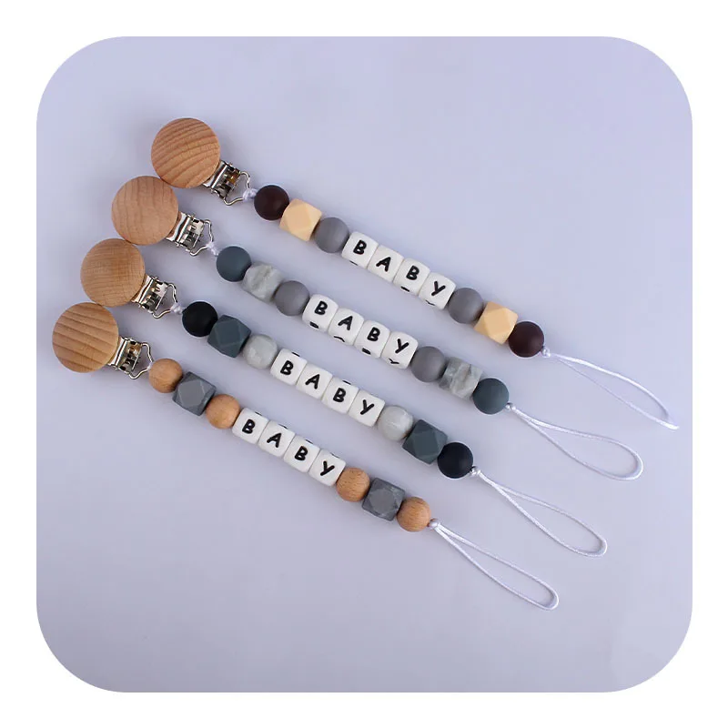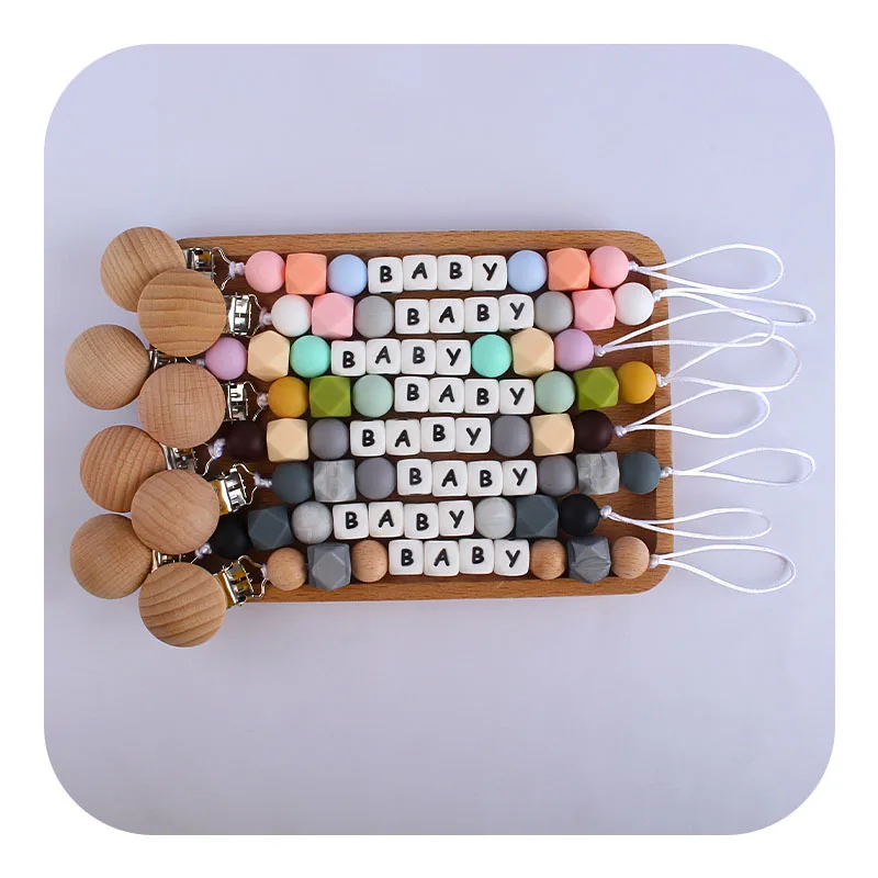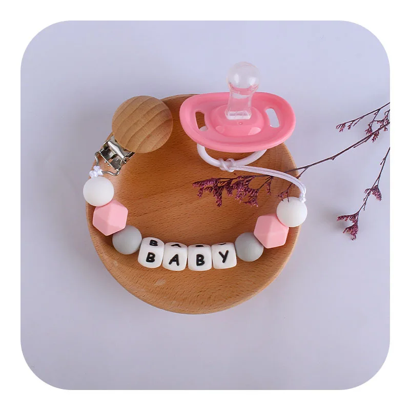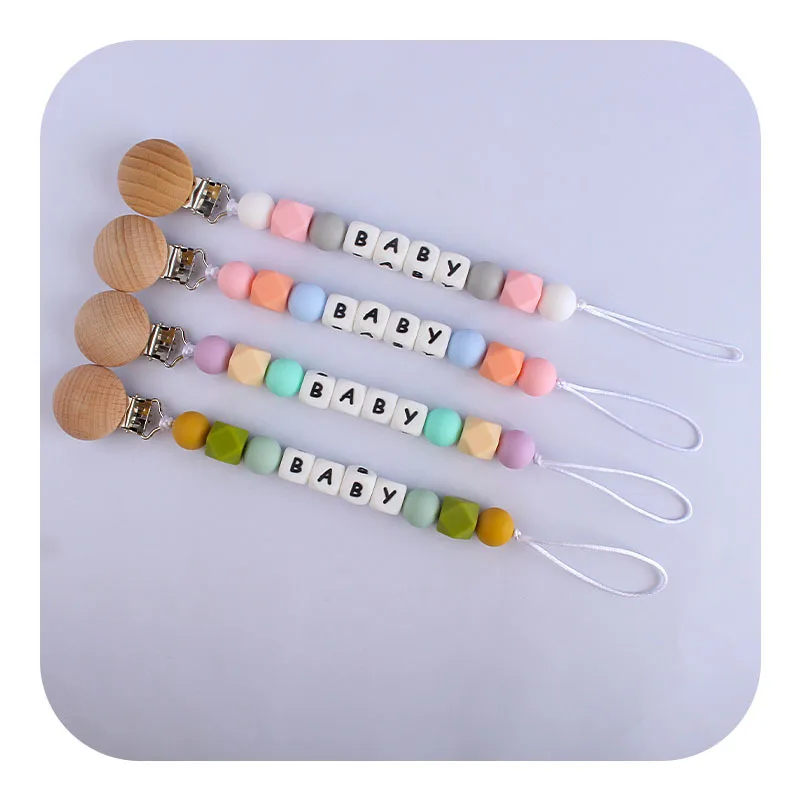 Силиконовая цепочка для соски-пустышки с буквами Соска с бусами, зажимы для пустышки