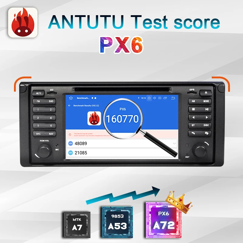 PX6PX6 является лучшим чипом на рынке в настоящее время, он работает быстрее, чем все другие типы. Балл ANTUTU составляет 160770, что лучше 9853 4G + 64G, PX5 и всех других типов 4 + 64G на рынке. По сравнению с другими радио типа fo, PX6 radio может загружать больше видов приложений android с android market, и приложение может работать лучше.