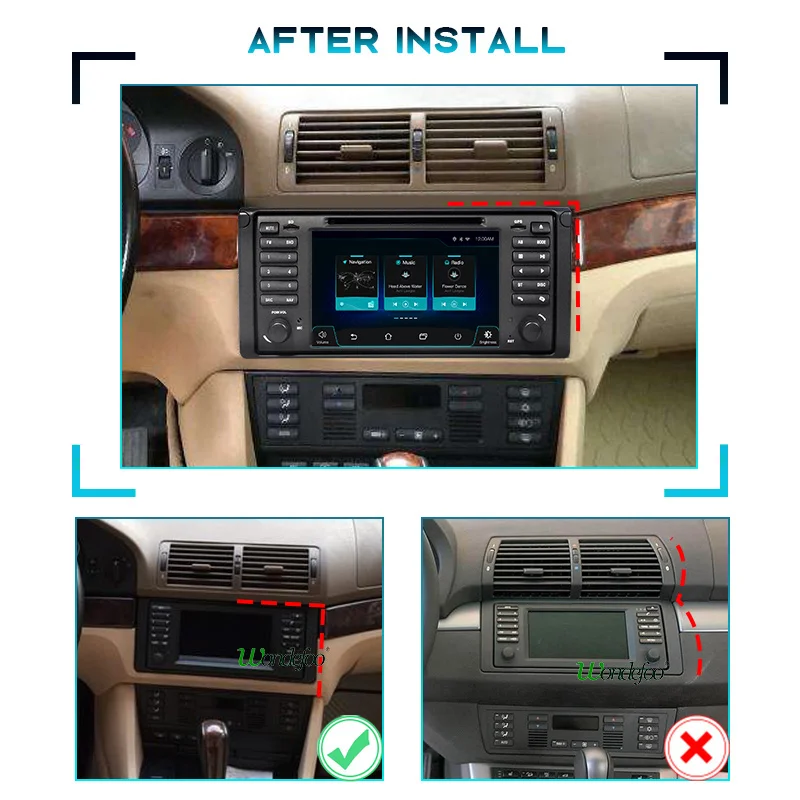 Зеленый знак может установить наше радио.Что касается Красной отметки, размер автомобильного радио отличается от нашего продукта, и автомобильное радио не может быть установлено. Если вы все еще не уверены, пожалуйста, оставьте сообщение нашей службе поддержки клиентов. Мы поможем вам.