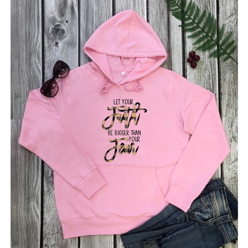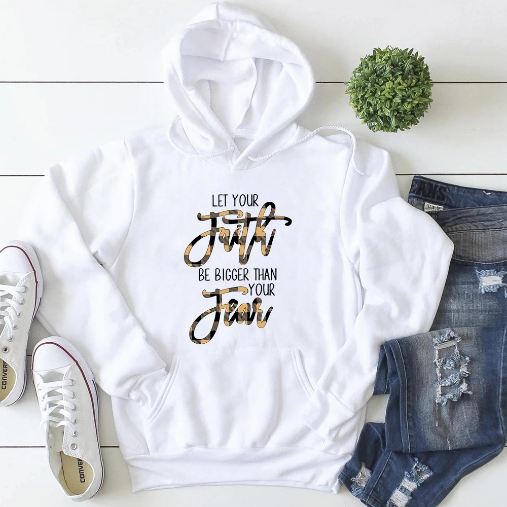 Пусть ваша вера быть больше, чем ваш страх плед Цветной Толстовка Писания Для женщин с длинным рукавом стих из Христианской Библии Толстовка