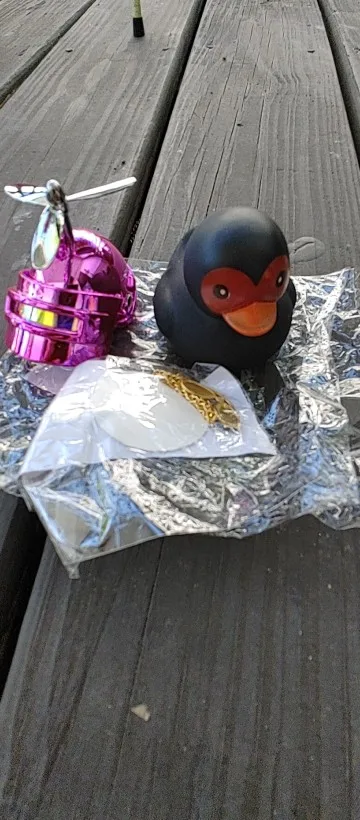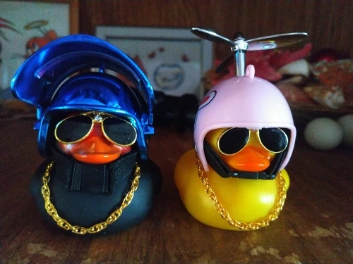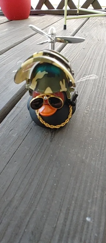 Клювик у уточки снизу и немного сверху опылен в чёрный цвет, мелкие точки, и в нижней части самой уточки стоит круглая мембрана-резинка, наполовину пришла оторванной, но этот факт я опустил, так как низ все равно не видно(приклеил на панель авто, спор открывать не стал), уточка в принципе зачётная!