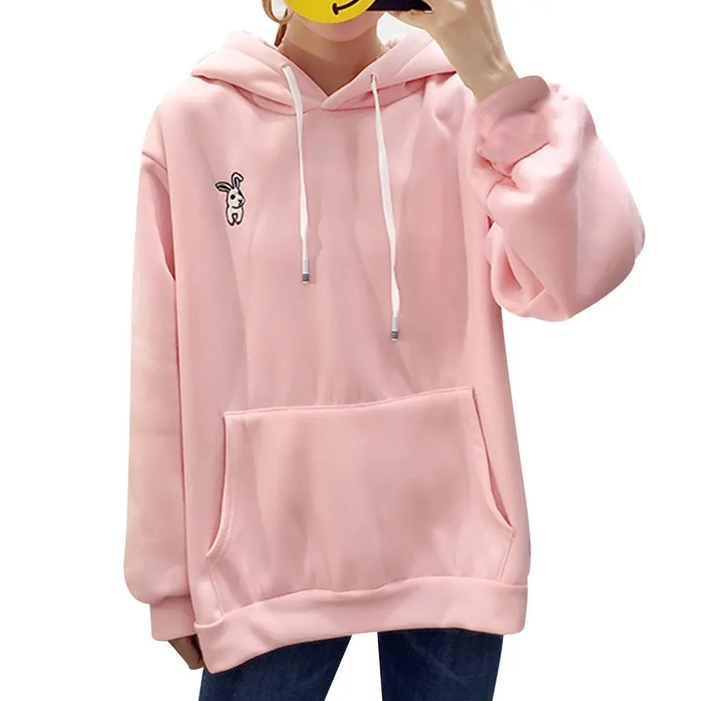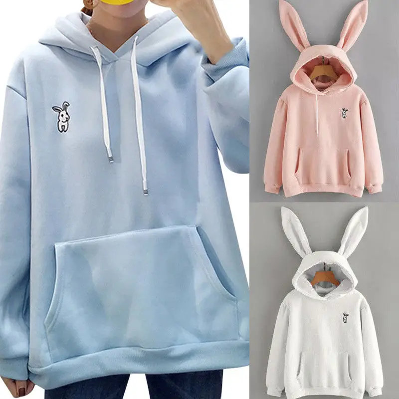 Толстовка женская с капюшоном, свитшот с длинным рукавом и мультяшным кроличьим ушком для девочек, пуловер, пальто, худи с милым Кроликом, весна-осень