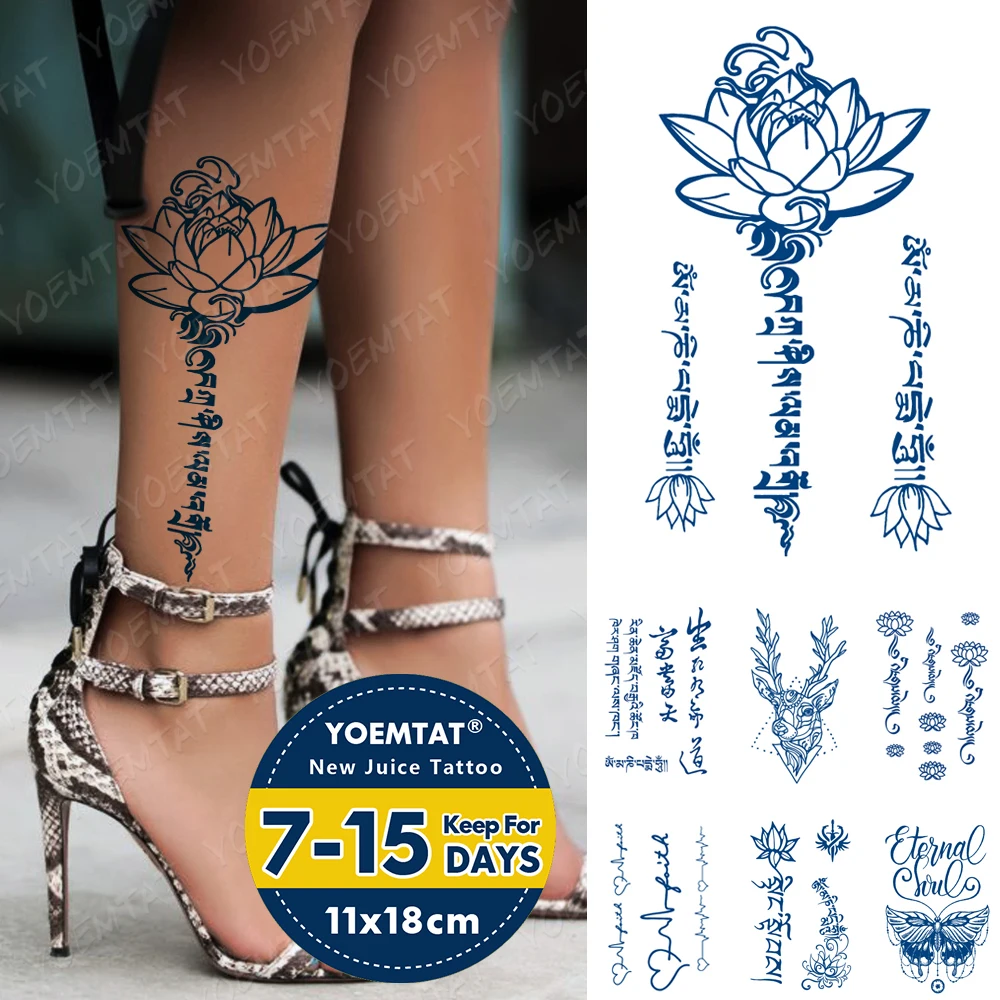 Сок чернила татуировки, боди-арт прочного Водонепроницаемый временная татуировка Стикеры на санскрите лотоса тату для рук поддельные текстовые татуировки золотого и серебряного Для женщин Мужчины