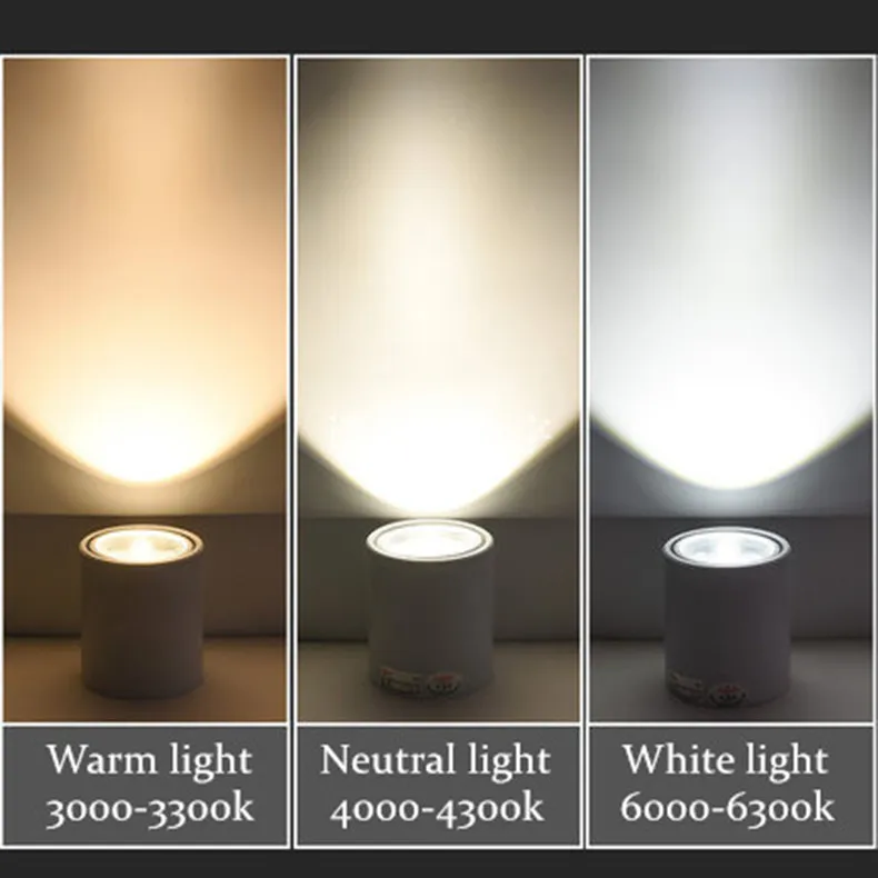 Изделие: светодиодный потолочный светильник с поверхностным монтажом Мощность: 10 Вт, 20 Вт Цвет светильник: холодный белый, натуральный белый, теплый белый Цветовая температура: 3000-3200K (теплый белый), 4000-4500K (натуральный белый), 6000-6500K (белый) Напряжение: 85-265 В переменного тока Гц Материал корпуса: алюминий Цвет корпуса: белый/черный Особенность: по вертикали-360 градусов вращения; По горизонтали-180 градусов регулируется.