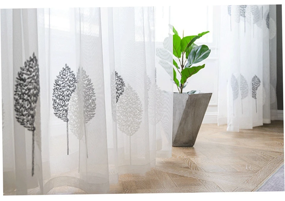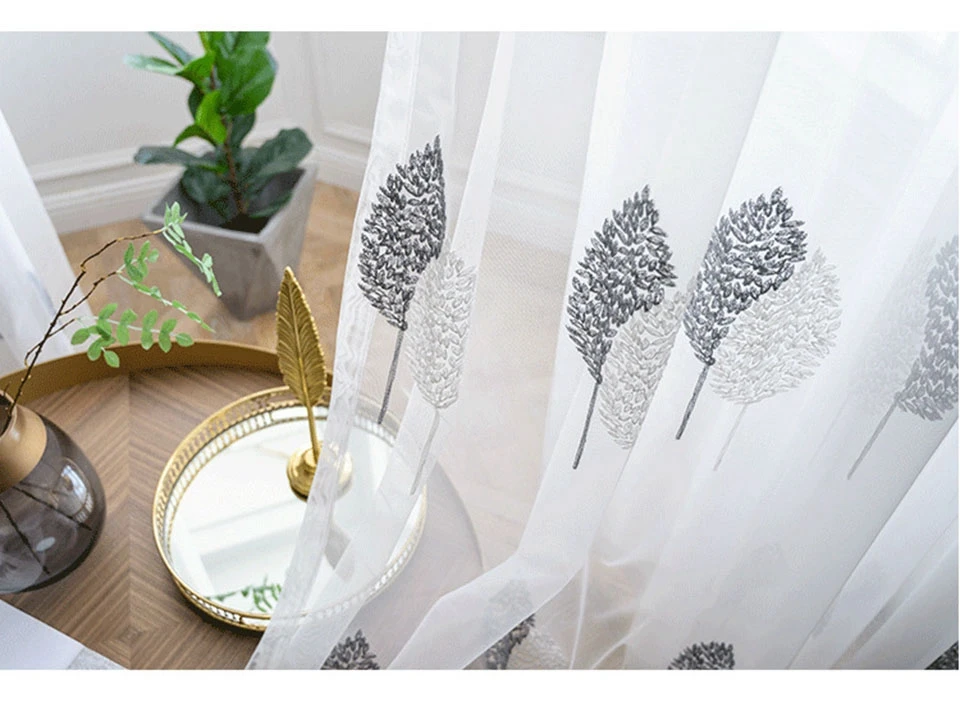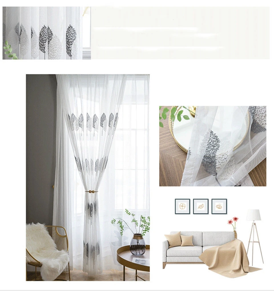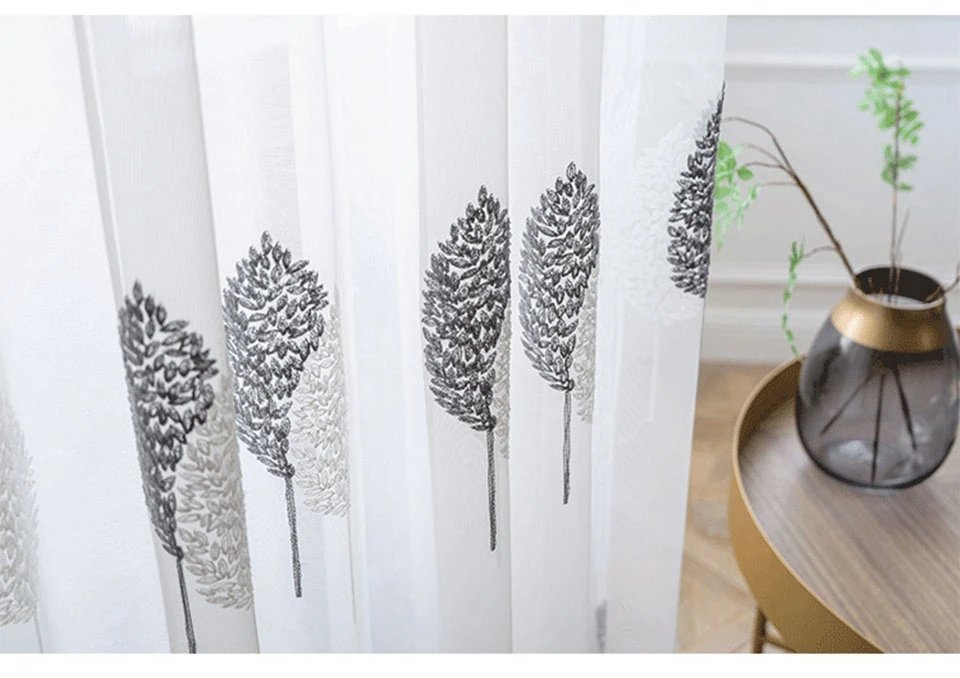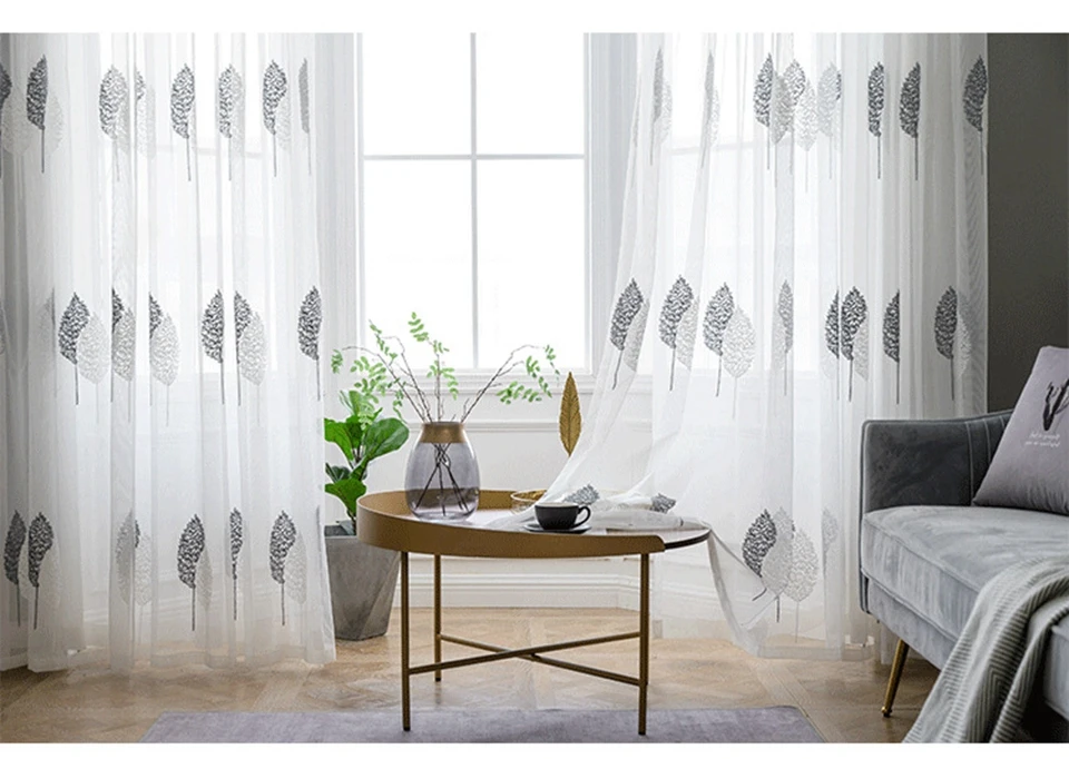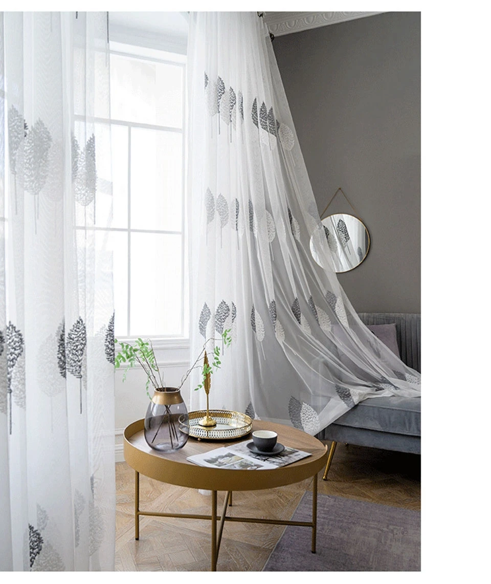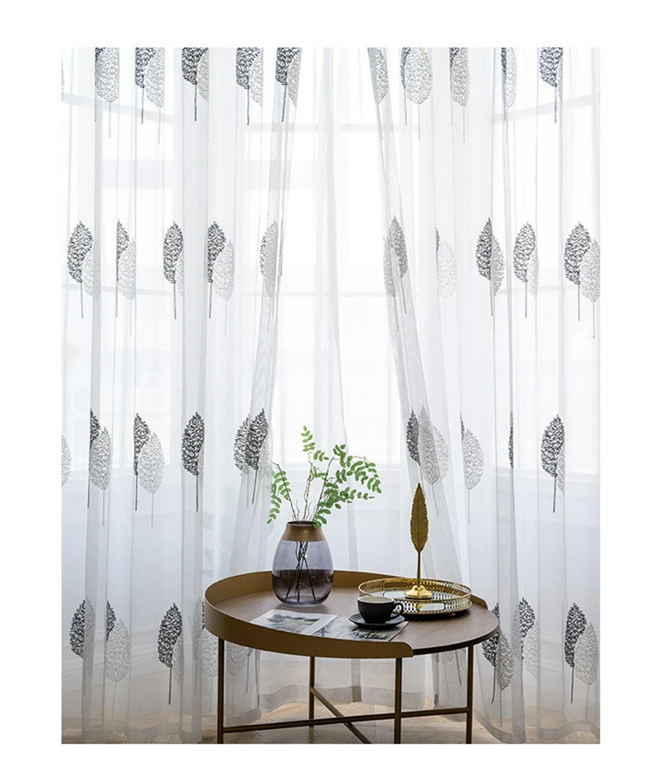 Прозрачные Занавески s для гостиной, серые вышитые тюлевые занавески s с листьями для спальни, оконные занавески, занавески