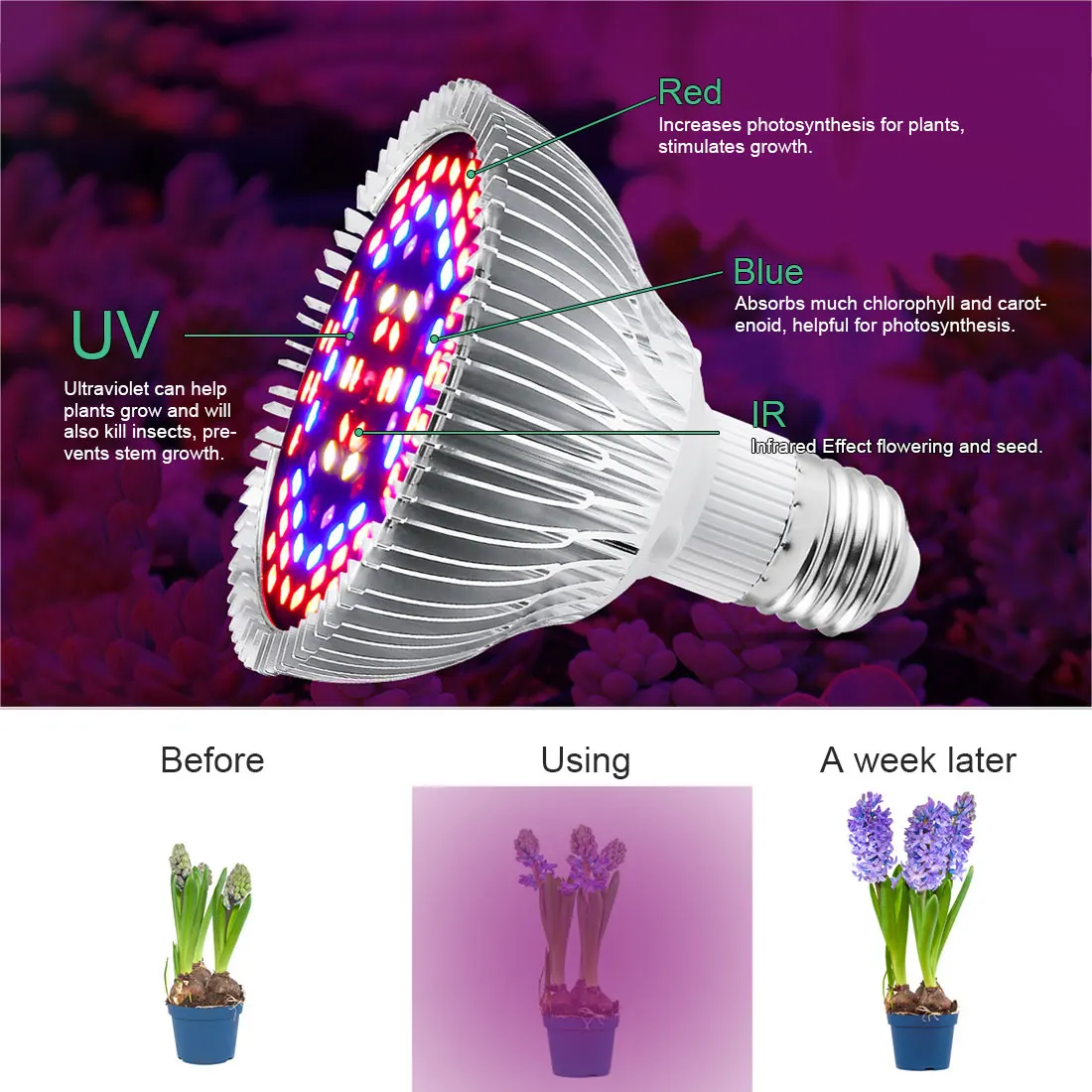 Светодиодный светильник для выращивания растений, 18 бусин, 40 бусин, 78 бусин, 120 бусин, лампа для выращивания растений в теплице, лампа для палаток полного спектра E27