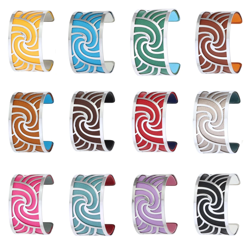 Женский кожаный браслет из нержавеющей стали, 40 мм