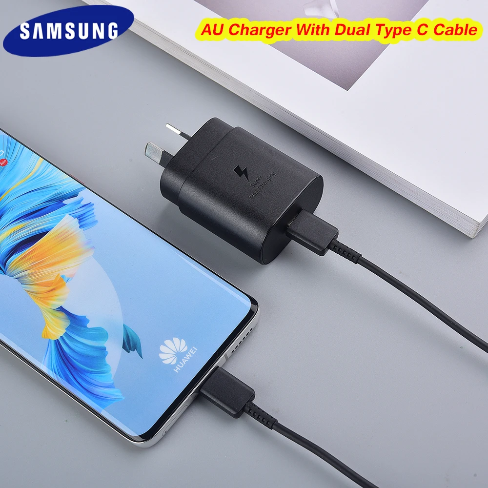 Оригинальное зарядное устройство Samsung Note 10, 25 Вт, штепсельная вилка AU, Быстрый Настенный адаптер 100 см, двойной кабель типа C для Galaxy S20 Note 10 + S8 S9 A71 A51 5G