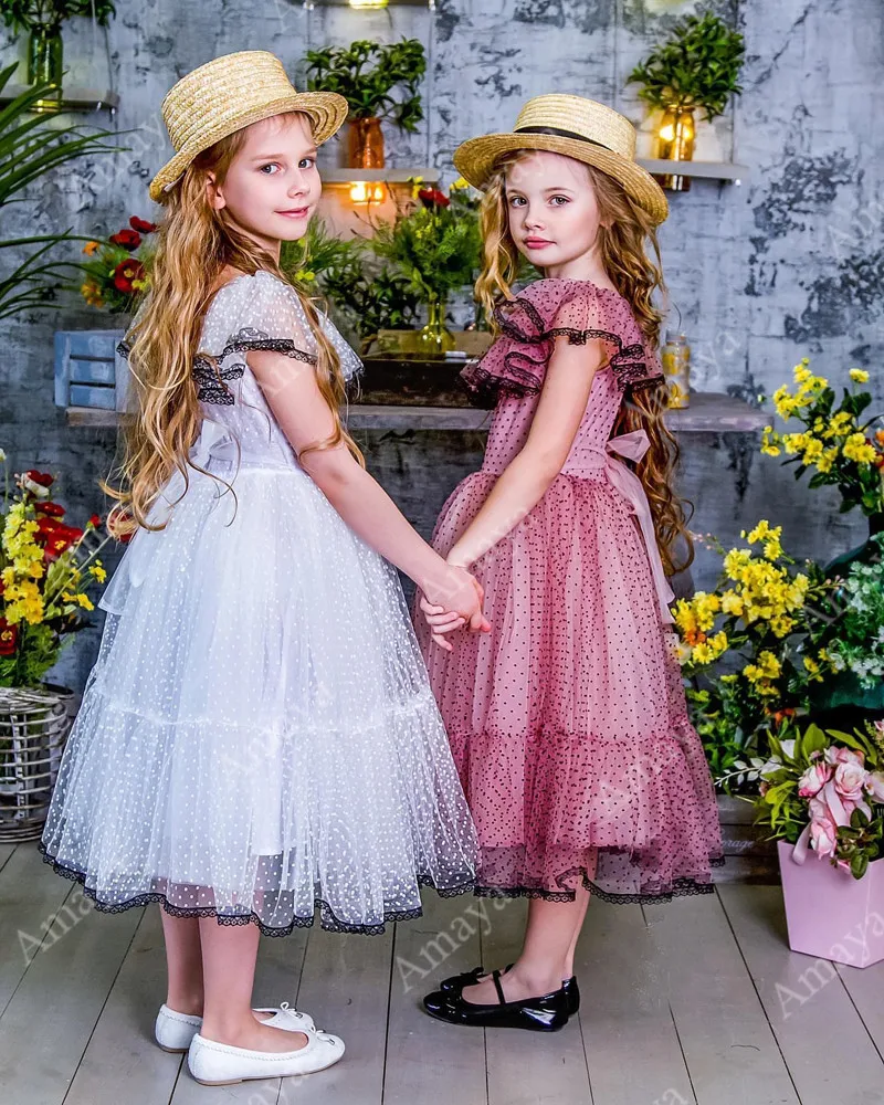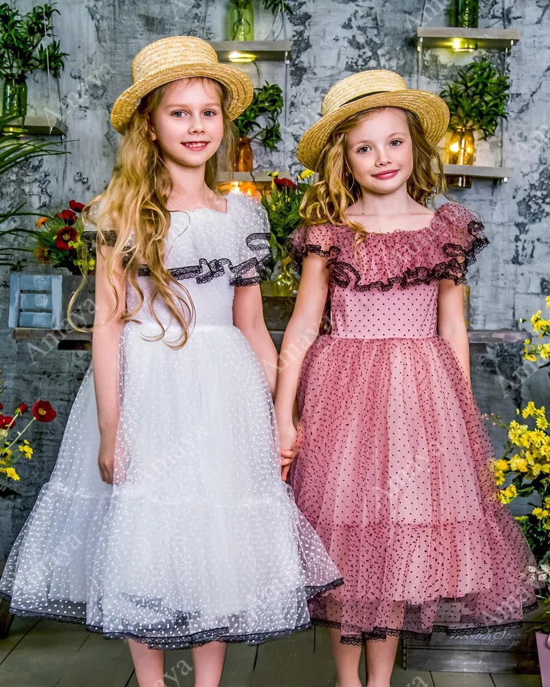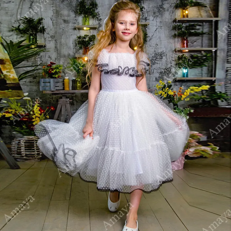 Платье Amaya с цветочными оборками для девочек, свадебное ТРАПЕЦИЕВИДНОЕ платье в горошек, без рукавов, пышная юбка для пышного торжества, дня рождения, рождественское платье для девушек