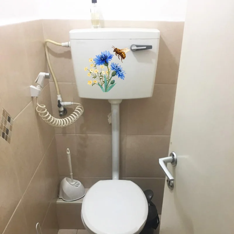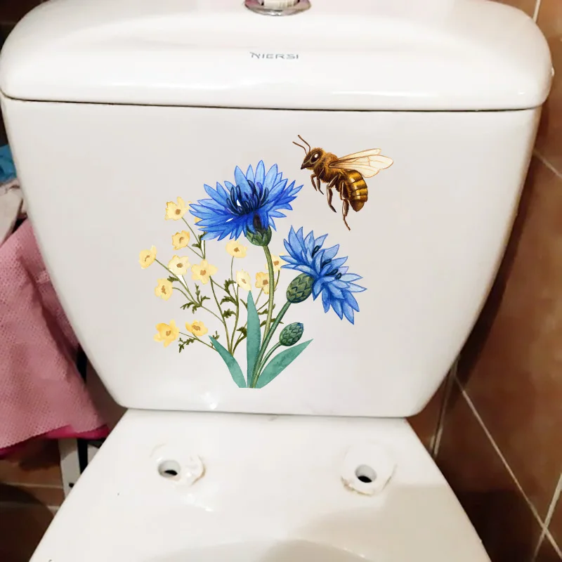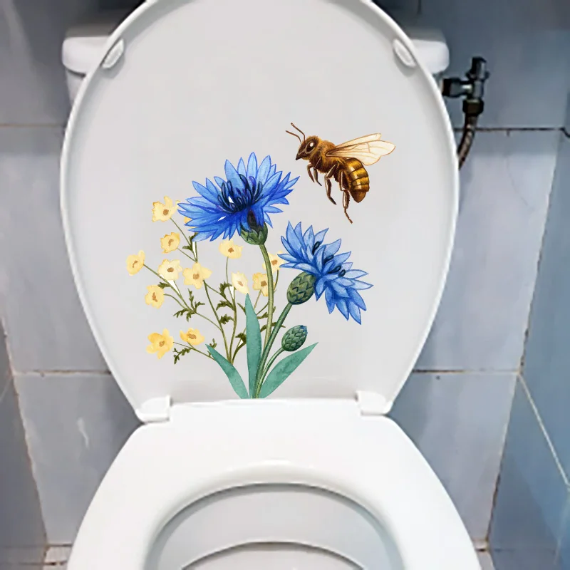 ZTTZDY 23,7 см 24 см смешные наклейки на унитаз с синими цветами для украшения стен комнаты T2-1027